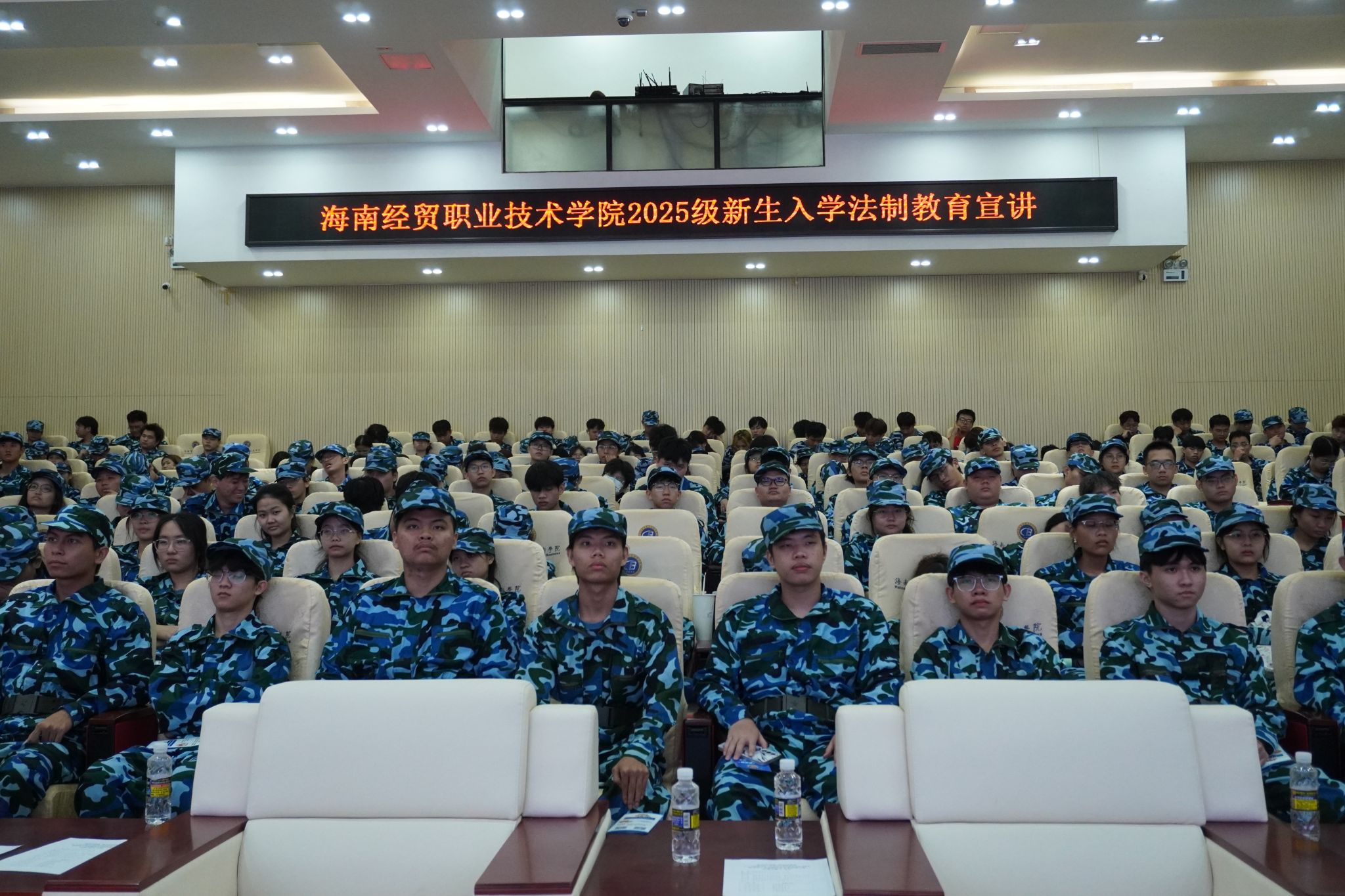 2025年9月18日,海口市公安局反走私支队警官孙晓燕、桂林洋高校区派出所警官李哲应邀来到beat365英国官网网站,为新生开展法治教育宣讲。