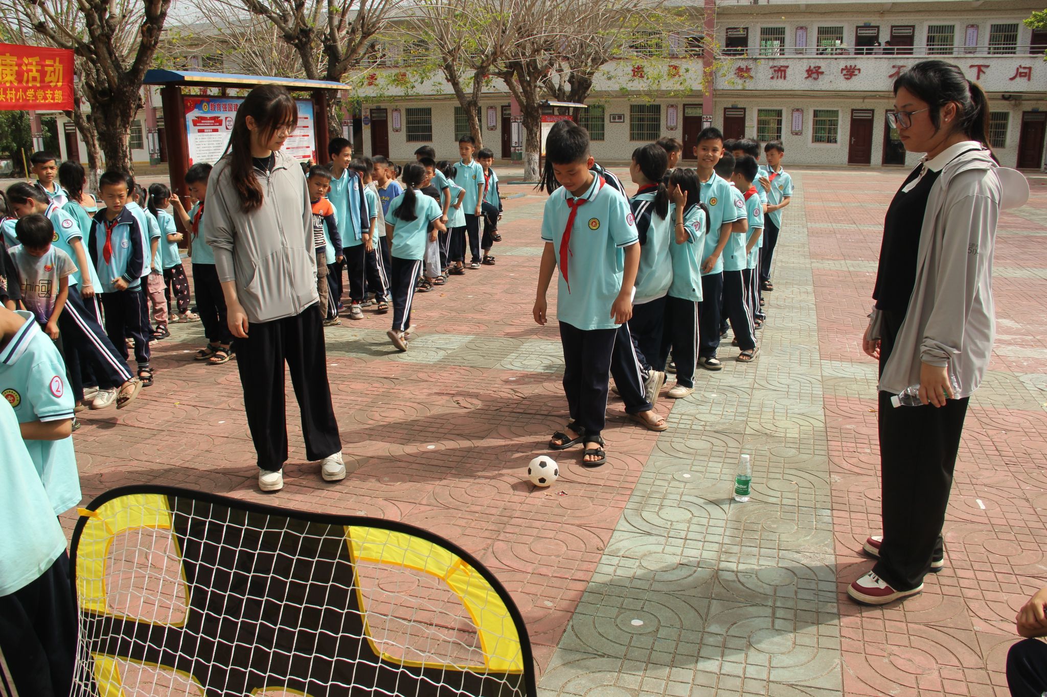 在水头小学广场,丢沙包、踢足球、绘画活动……财务管理学院师生组织丰富多彩的文体活动,让小朋友们在活动中释放压力,增强体质,培养团队协作精神,用五彩的画笔展现丰富的想象力和创造力。