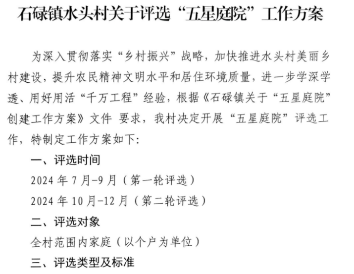 在水头村开展“五星庭院”评选