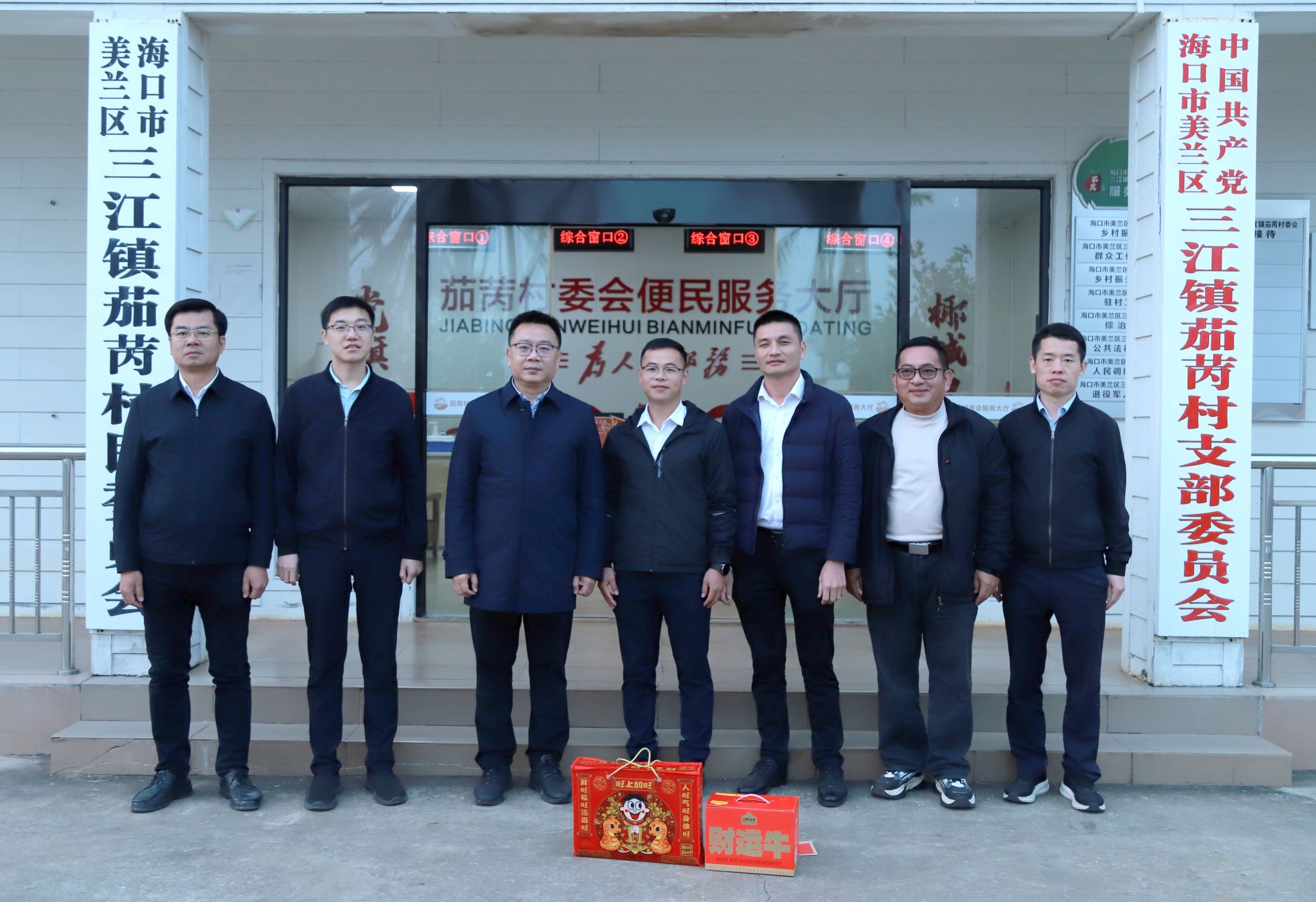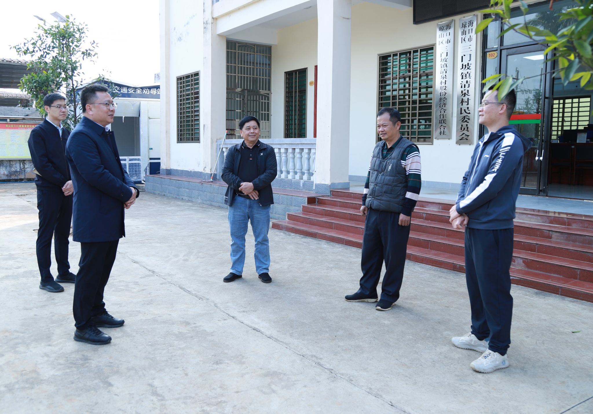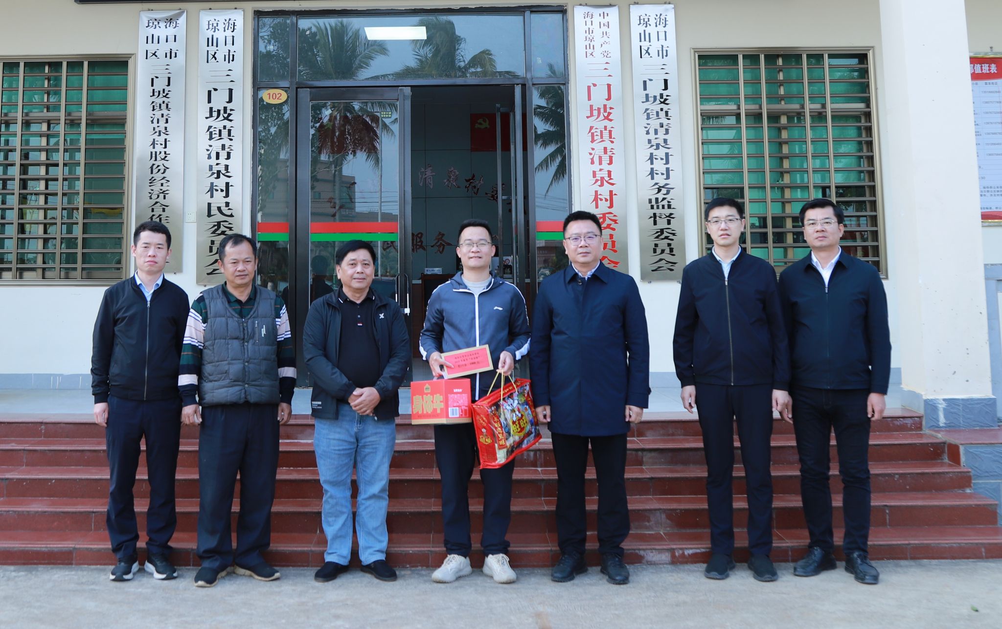 2025年1月17日,beat365英国官网网站党委书记王华来到昌江县石碌镇水头村委会,海口市三门坡镇清泉村委会、红旗镇红旗村委会、云龙镇云岭村委会、三江镇茄苪村委会,看望慰问学校驻乡村振兴工作队干部王师庆、郑磊、黄银亮、文有科、赵会达,送去党委的关爱温暖和春节的问候祝福。学校党委委员田小林、方天海参加慰问活动。