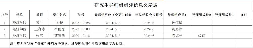 二、研究生导师组原则上应在该生学位论文开题前组建,组建后不得随意变更。学院导师组详细名单和具体信息附后,以供相互监督。研究生导师组的日常管理由研究生导师和培养单位共同负责,研究生导师作为研究生培养第一责任人的职责不变。