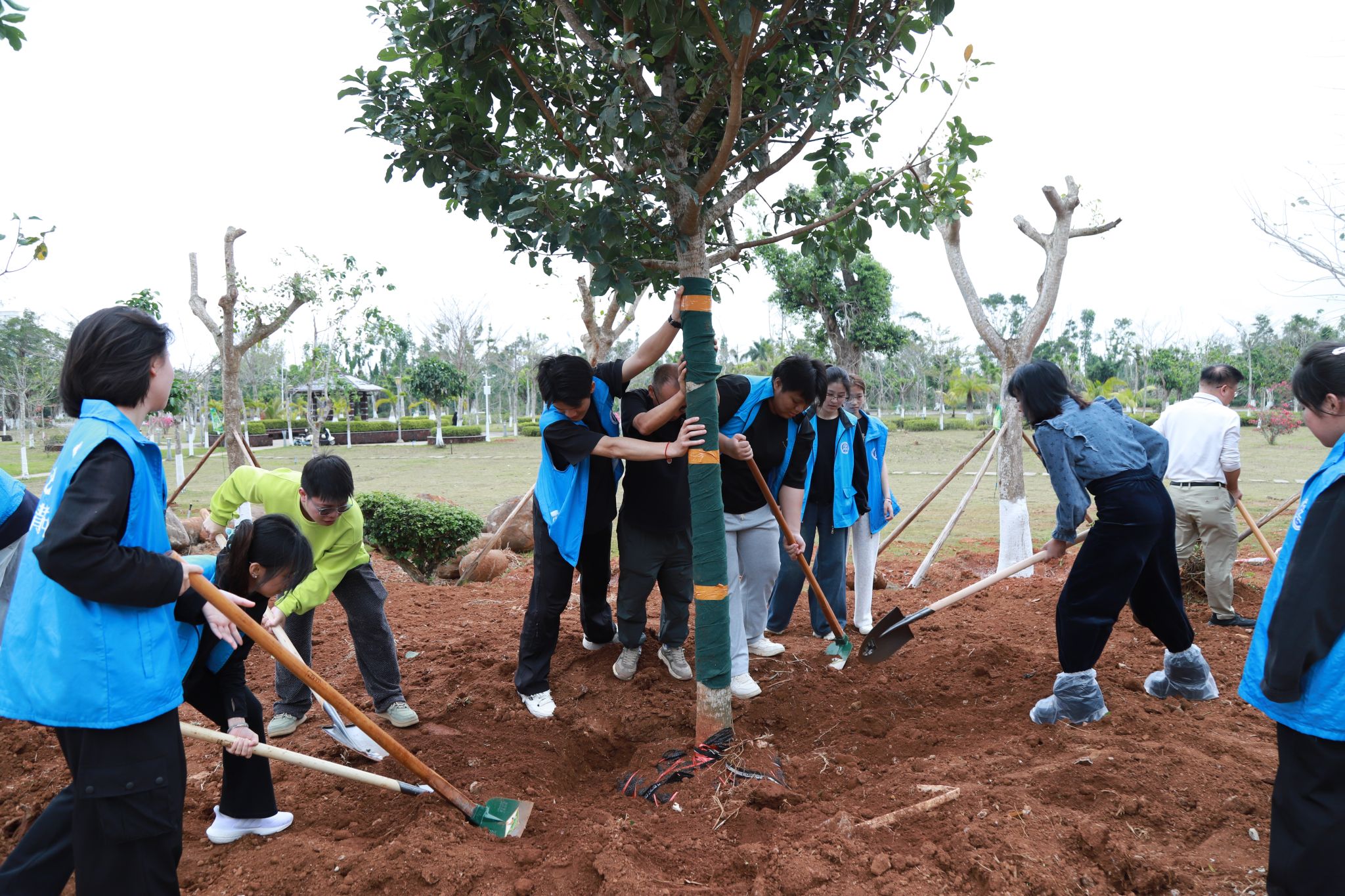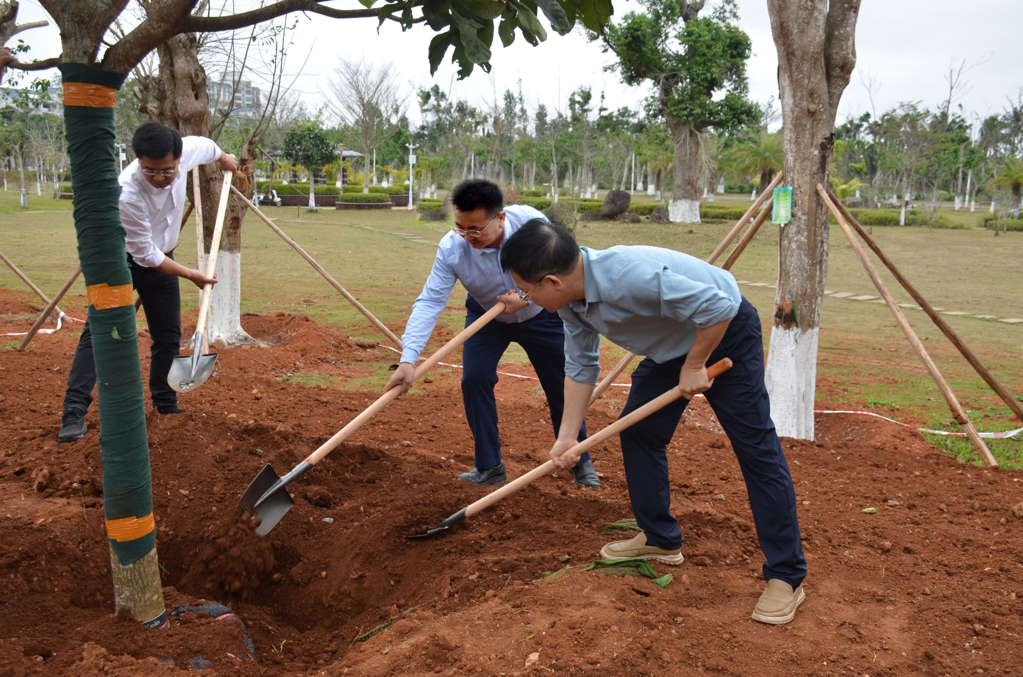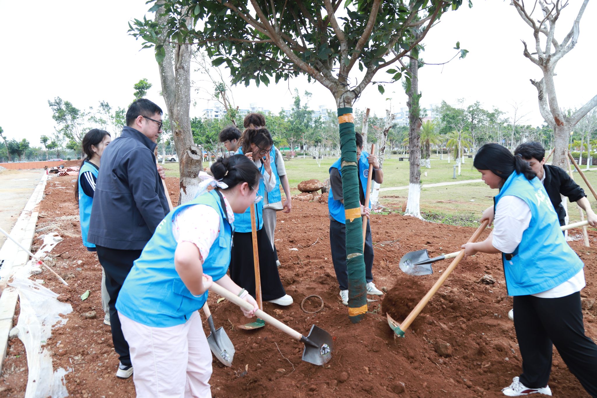 植树增绿意,校园焕春光。2025年3月12日下午,beat365英国官网网站党委副书记、校长崔昌华,党委委员、副校长陈修焕,党委委员田小林、方天海与师生们一起,开展“绿美经贸,共植未来”主题植树节活动, 播撒新希望,让生态的种子在海经贸生根发芽,将保护环境的理念融入日常,为文明校园增添一抹新绿,持续推进美丽校园建设。