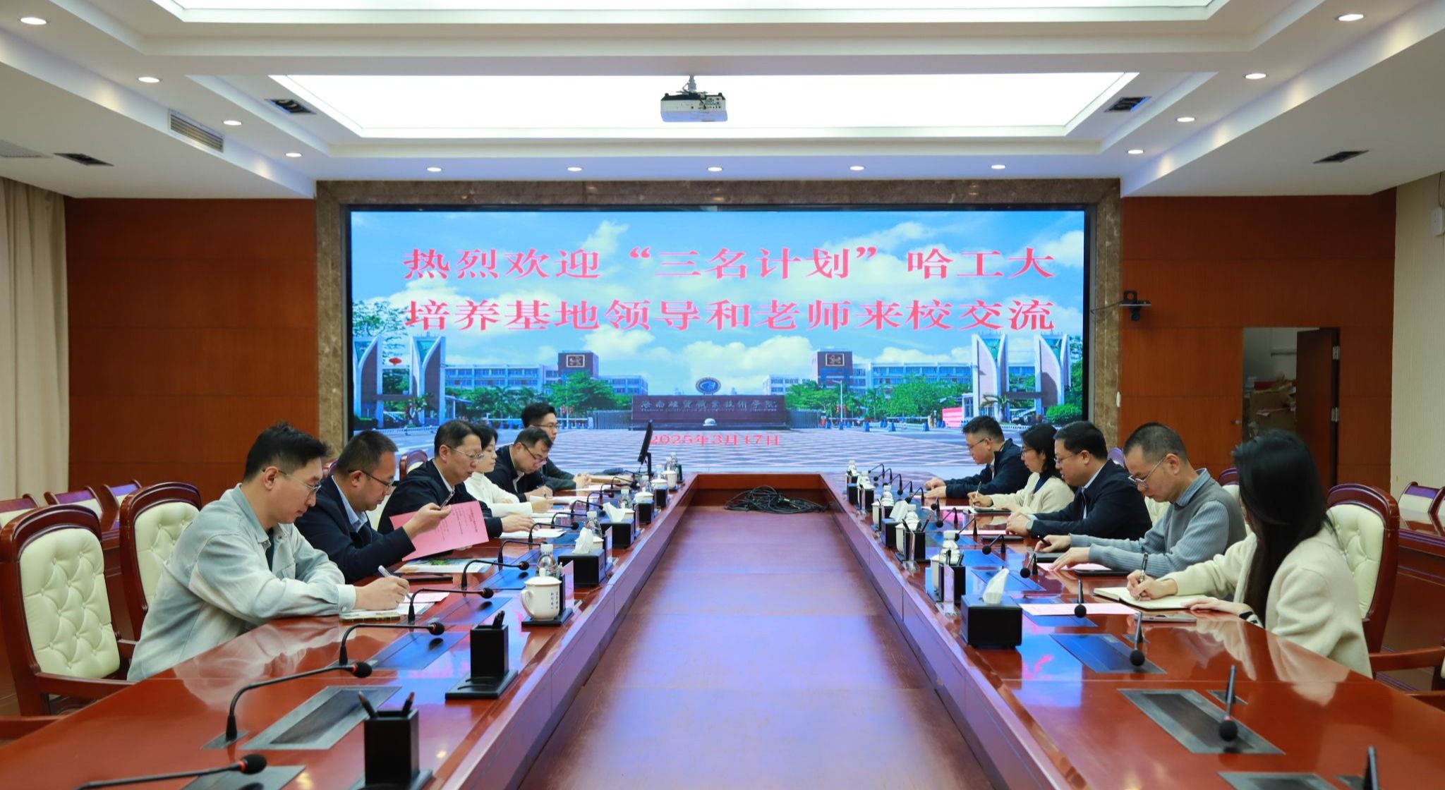2025年3月17日,哈尔滨工业大学继续教育学院副院长杨海一行6人来到beat365英国官网网站,开展“三名计划”教师线下实践交流。学校党委副书记、校长崔昌华,党委委员、副校长李厚永热情接待了哈尔滨工业大学一行。