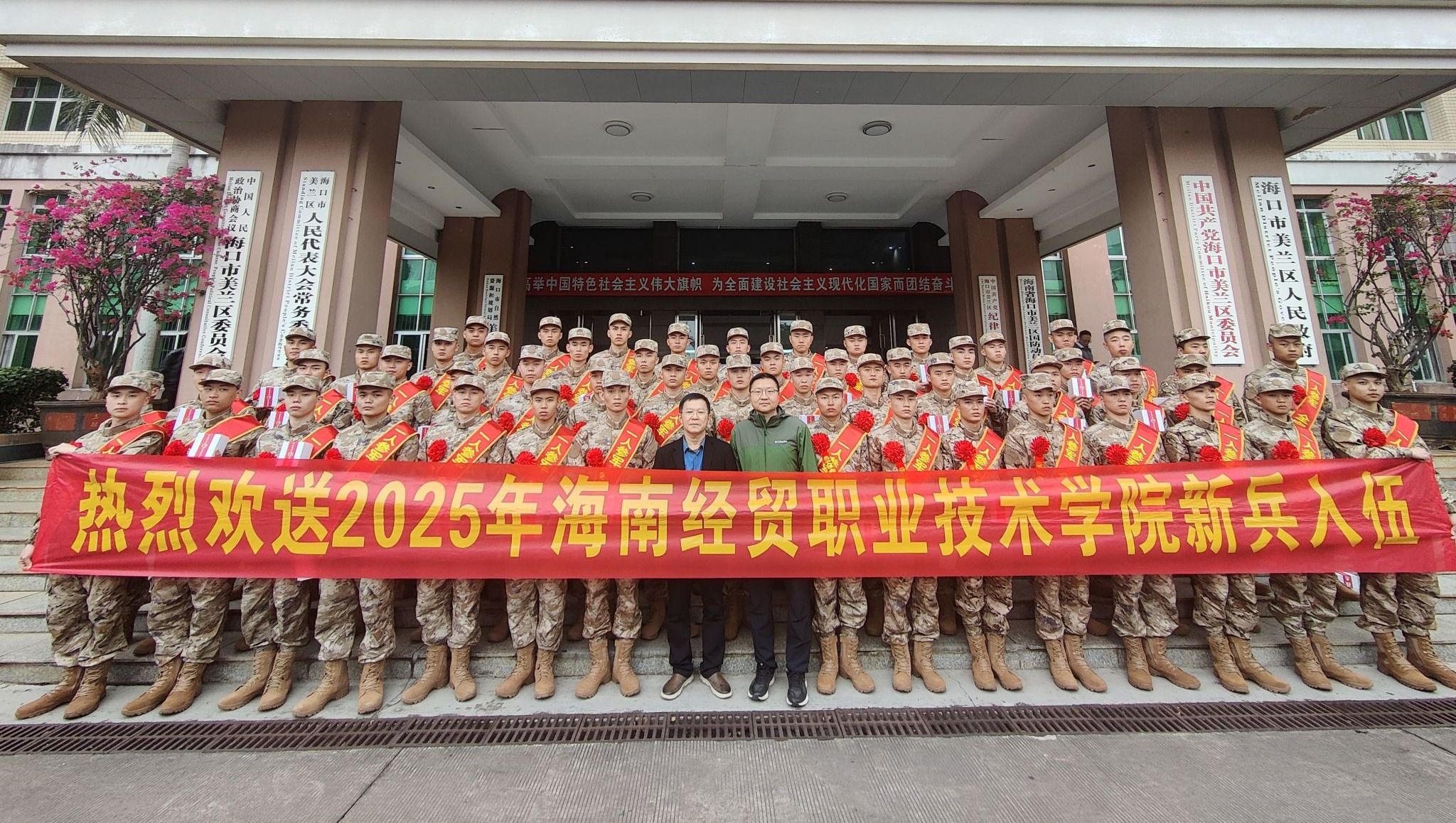 2025年3月18日,beat365英国官网网站党委委员、副校长陈修焕参加海口市美兰区入伍大学生欢送仪式,为即将踏上军旅征程的54名海经贸新兵送行,共同见证他们携笔从戎、报效国家的光荣时刻。