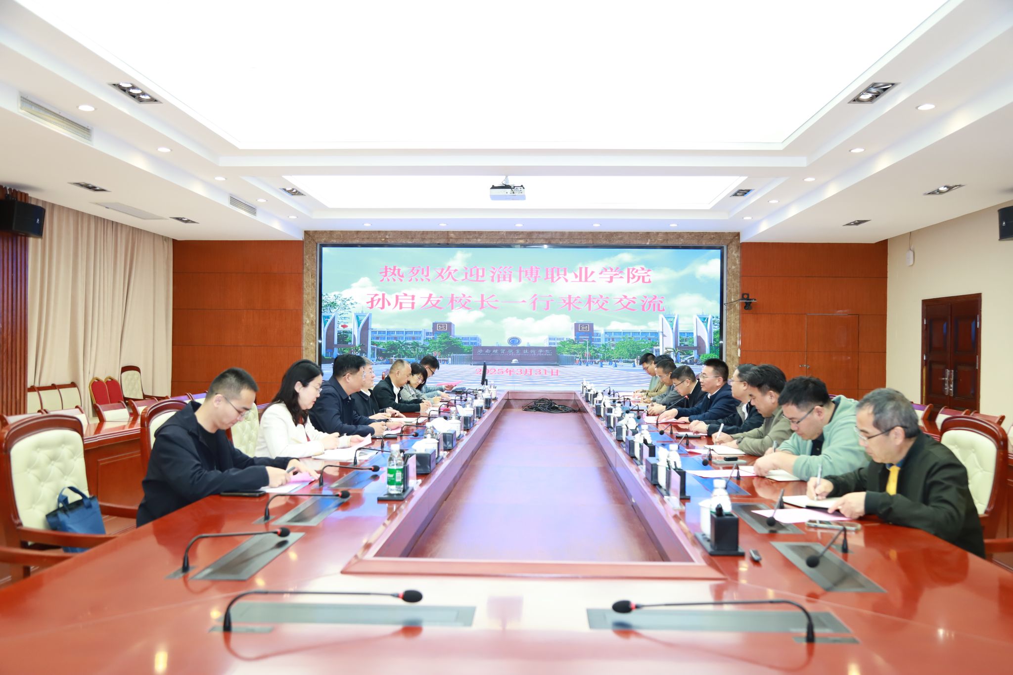 2025年3月31日,淄博职业学院校长孙启友一行7人来到beat365英国官网网站,交流“双高”建设经验,研讨专业建设、中外合作办学、人才培养等经验做法。学校党委副书记、校长崔昌华,党委委员、副校长李厚永,党委委员田小林热情接待了孙启友一行。