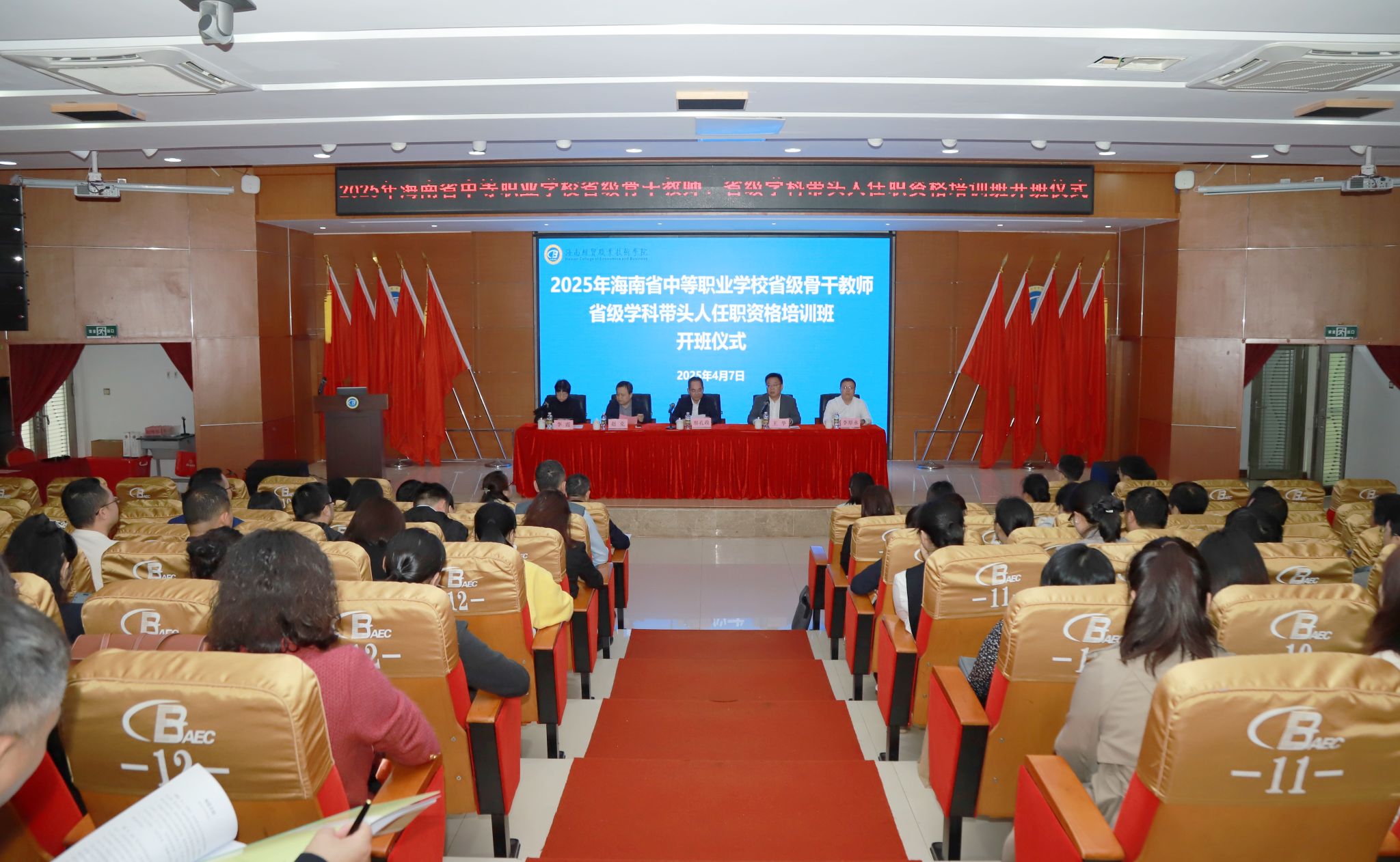 2025年4月7日,由海南省教育厅主办,beat365英国官网网站承办的海南省中等职业学校省级骨干教师、省级学科带头人任职资格培训班在学校学术交流中心正式开班。省委教育工委委员、省教育厅党组成员、副厅长邢孔政作开班动员讲话,学校党委书记王华致欢迎辞。