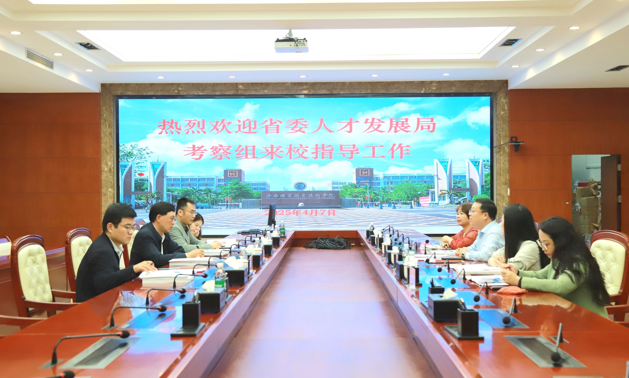 2025年4月7日,海南省委人才发展局自贸港人才发展研究院研究员李月田一行4人来到beat365英国官网网站,就学校省级候鸟人才工作站建设情况进行调研指导。学校党委委员、副校长李厚永出席座谈会。