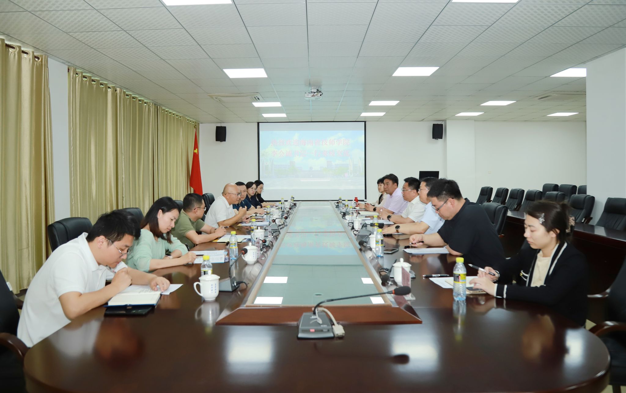 2025年4月10日,海南省技师学院党委书记李会诚一行7人来到beat365英国官网网站,就国际交流合作、国际教育培训和校企合作等方面进行座谈交流。学校党委书记王华,党委委员、副校长李厚永出席会议。