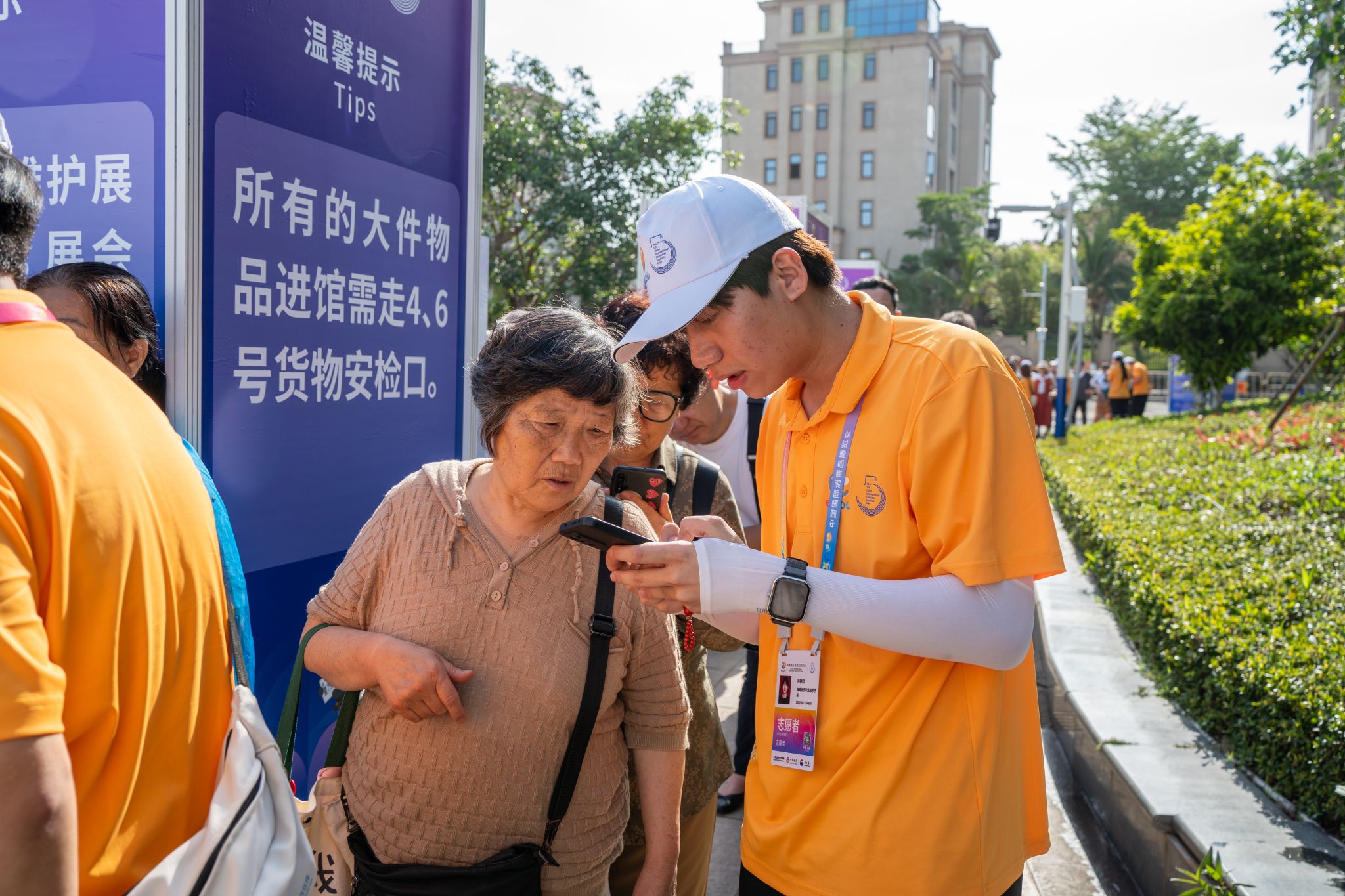 “您好,请看摄像头。”这是高紫涵同学作为票务组成员说得最多的一句话。“安检口的人流量是很大的,要不停提醒人群有序排队安检。我始终保持着饱满的热情,很开心能为消博会贡献我的力量。”