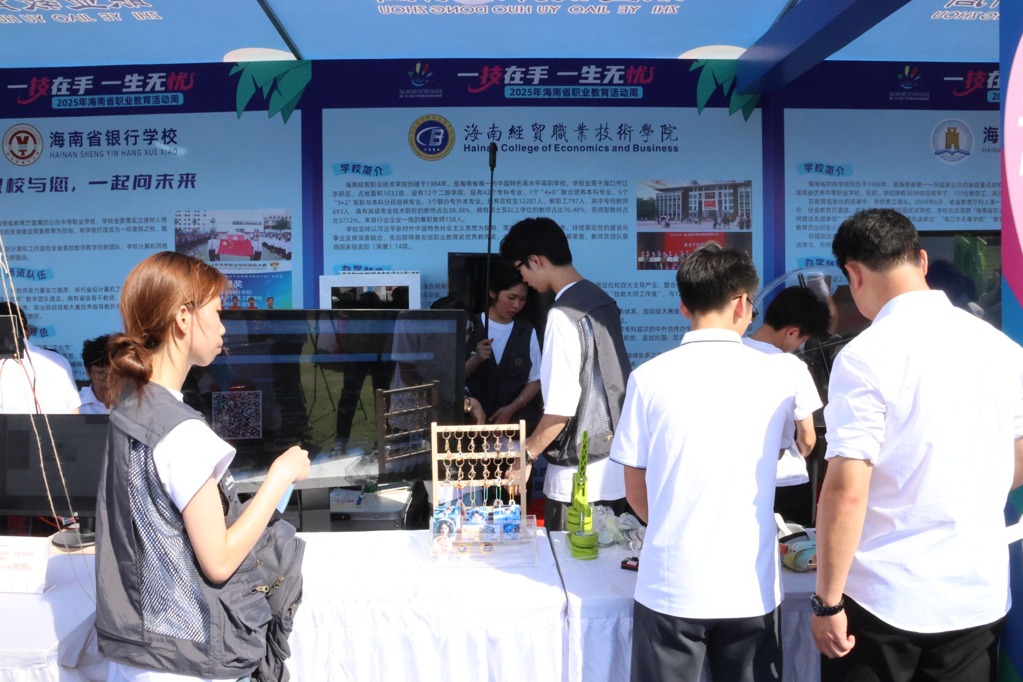 2025年5月17日,全省职教周活动展示在云洞图书馆广场举行。beat365英国官网网站师生们在展位上展示特色项目,大秀专业技能。市民们积极参与现场互动,为海经贸师生们的专业职业素质和精彩职业技能点赞。