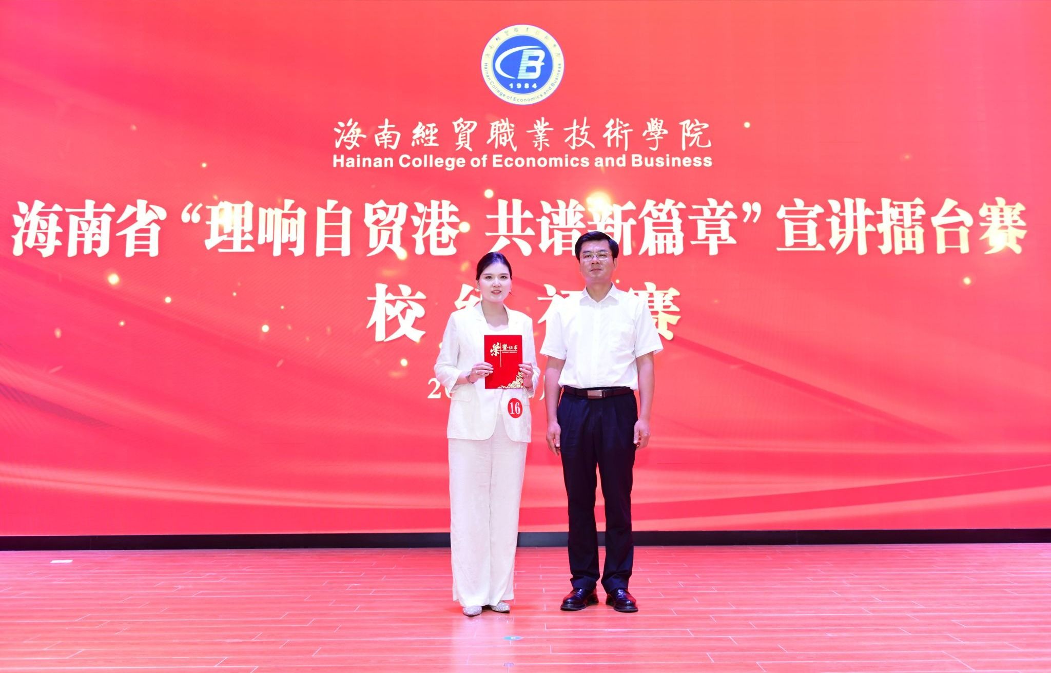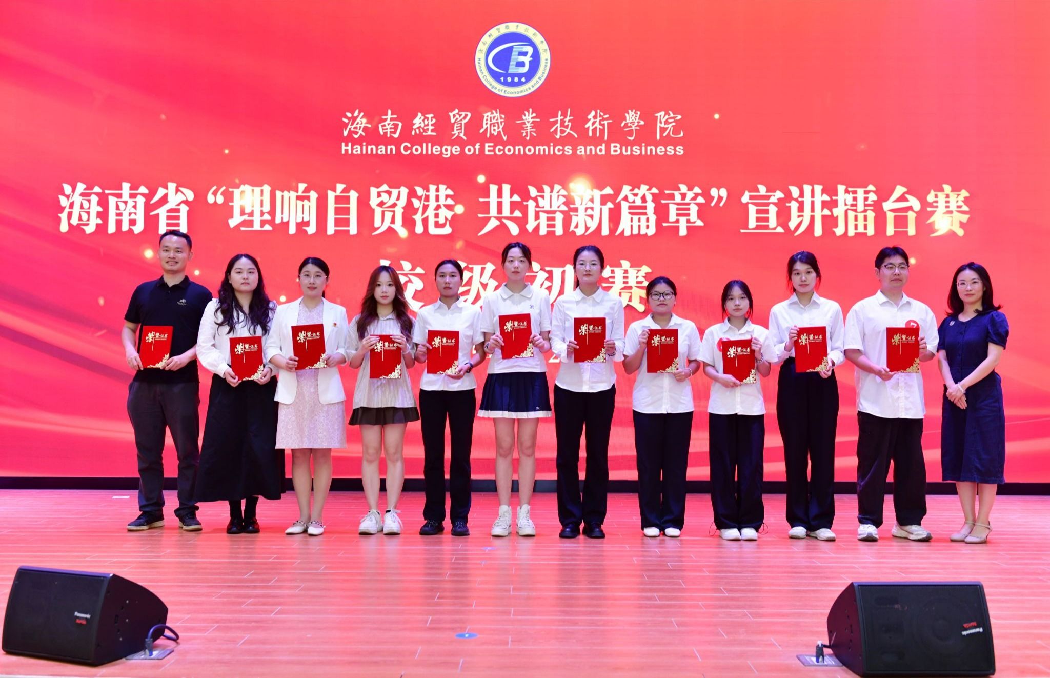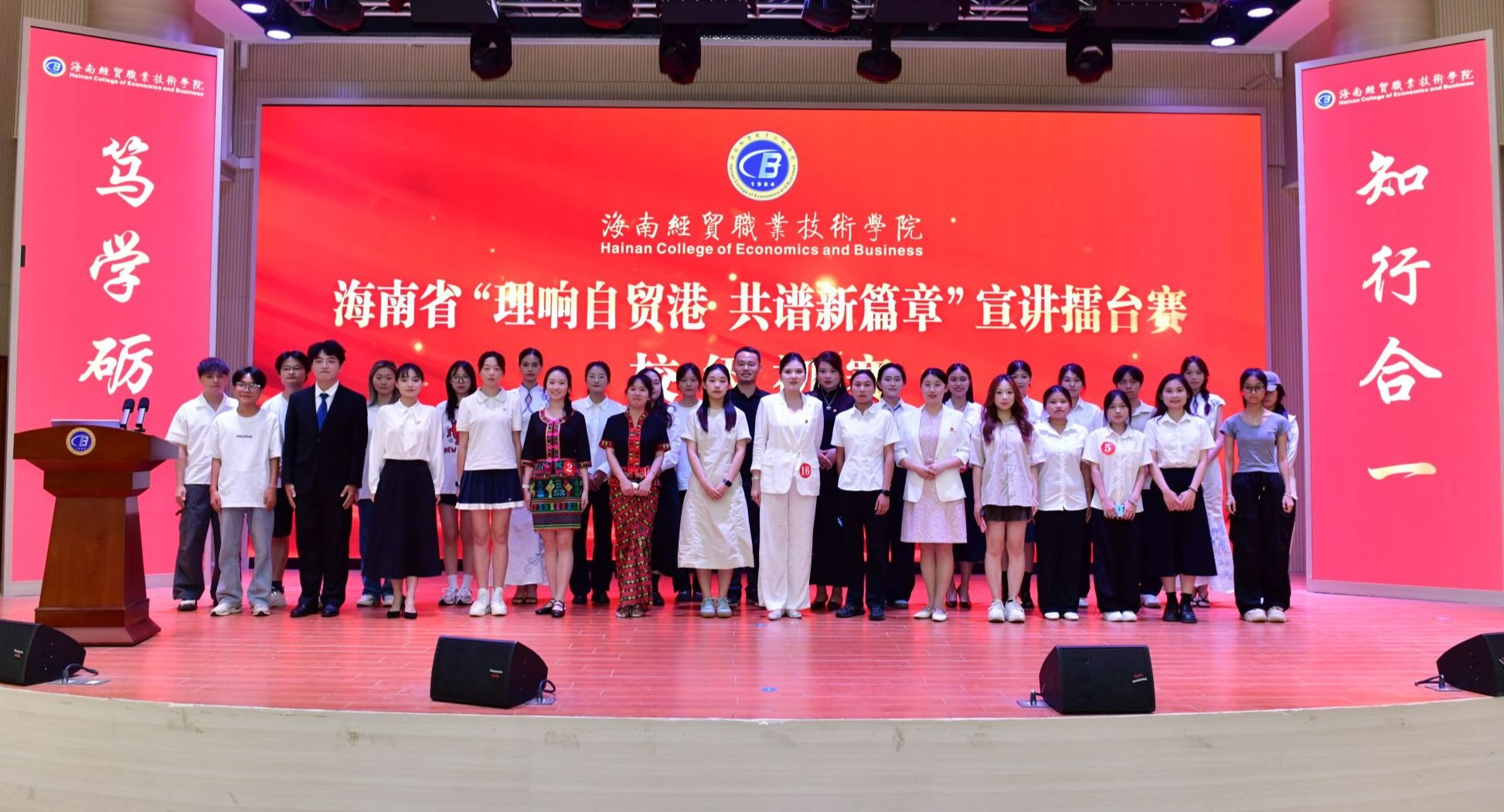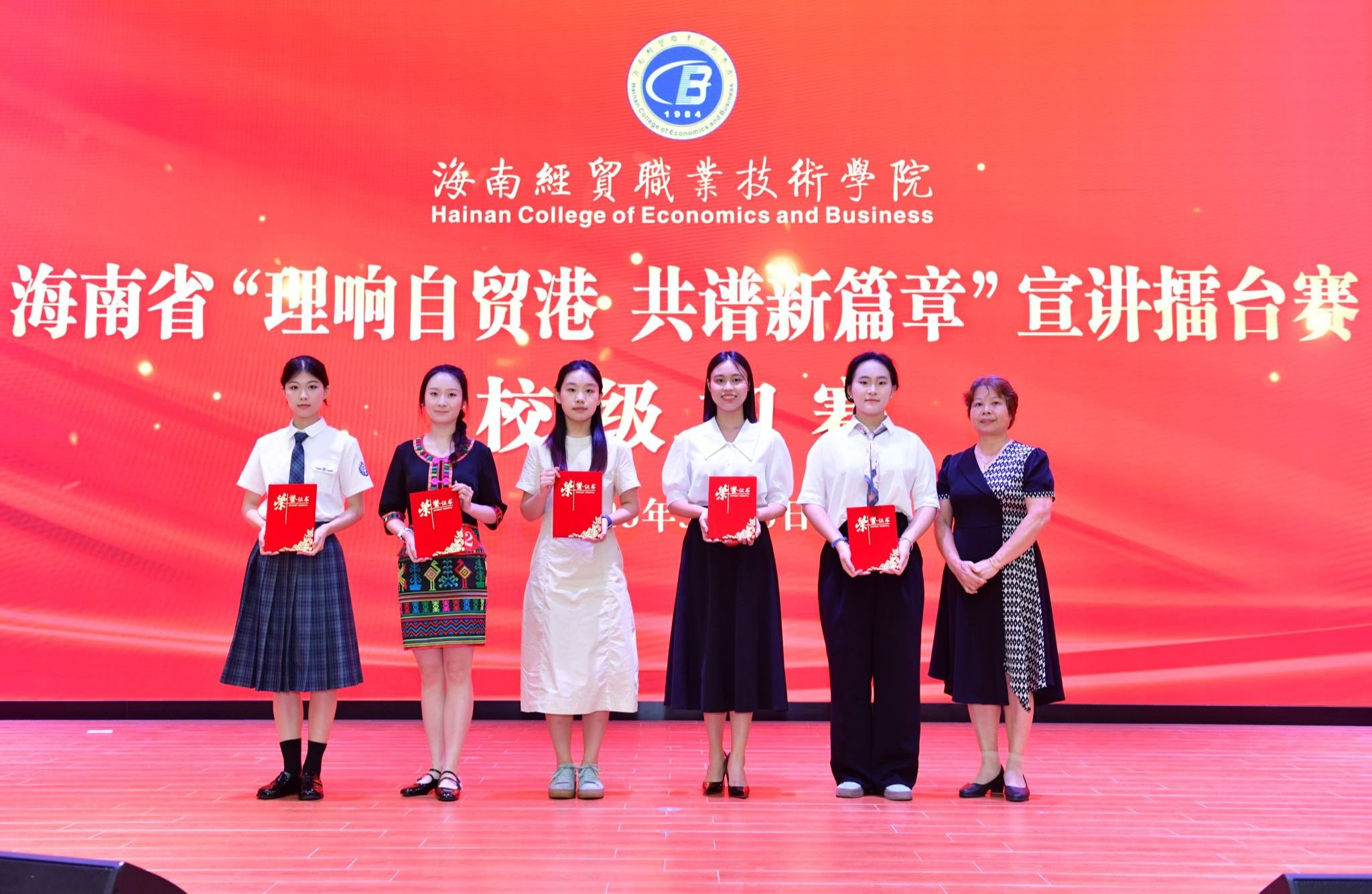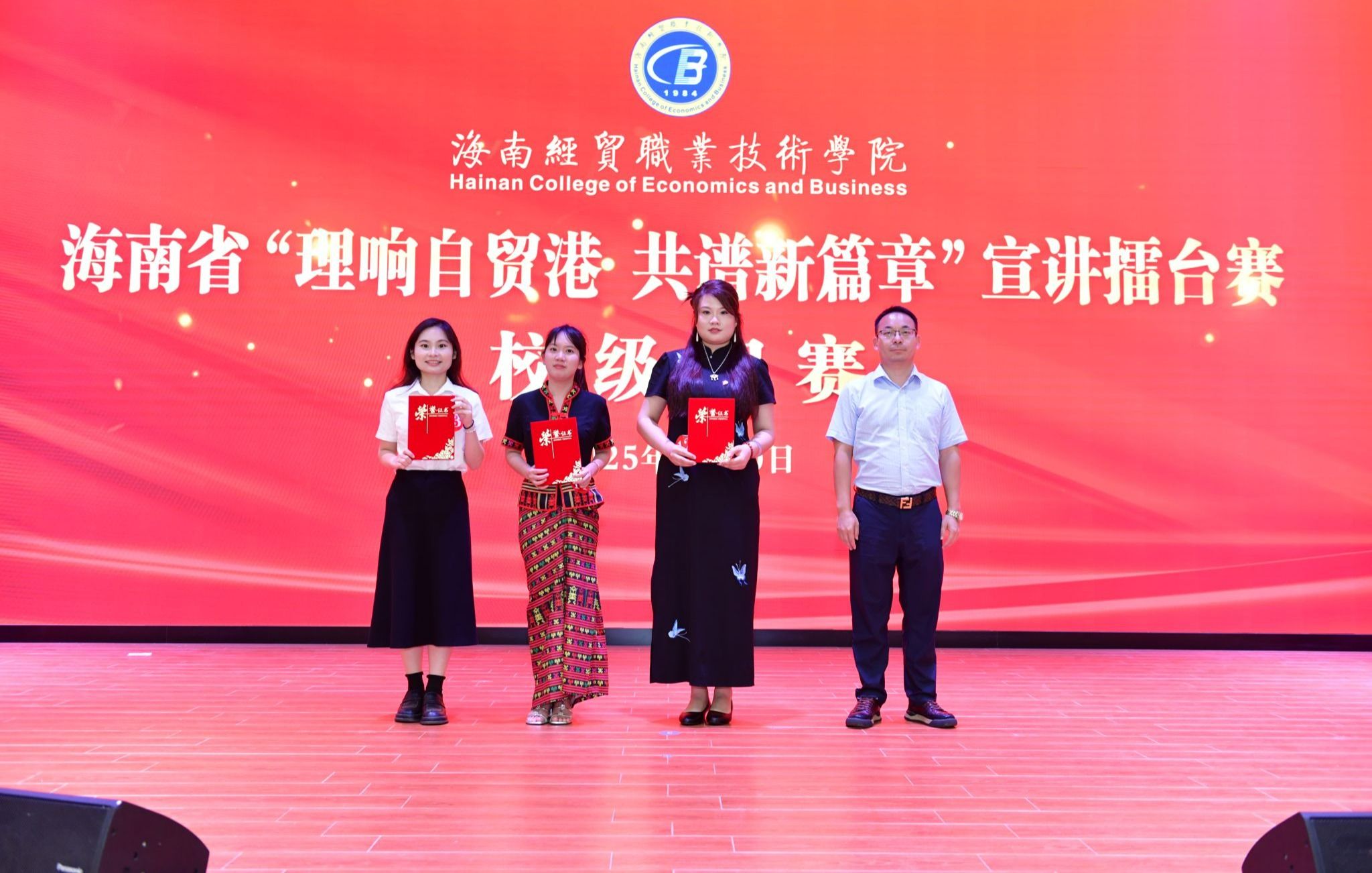 2025年5月20日,beat365英国官网网站举办海南省“理响自贸港 共谱新篇章”宣讲擂台赛校级初赛。来自学校各二级学院的20名师生选手以声传情、以理启思,带来了一场思想与情感交融的视听盛宴。经过激烈角逐,马克思主义学院参赛选手王艺霏凭借扎实的理论功底、生动的宣讲风格和深刻的情感表达,获得一等奖。