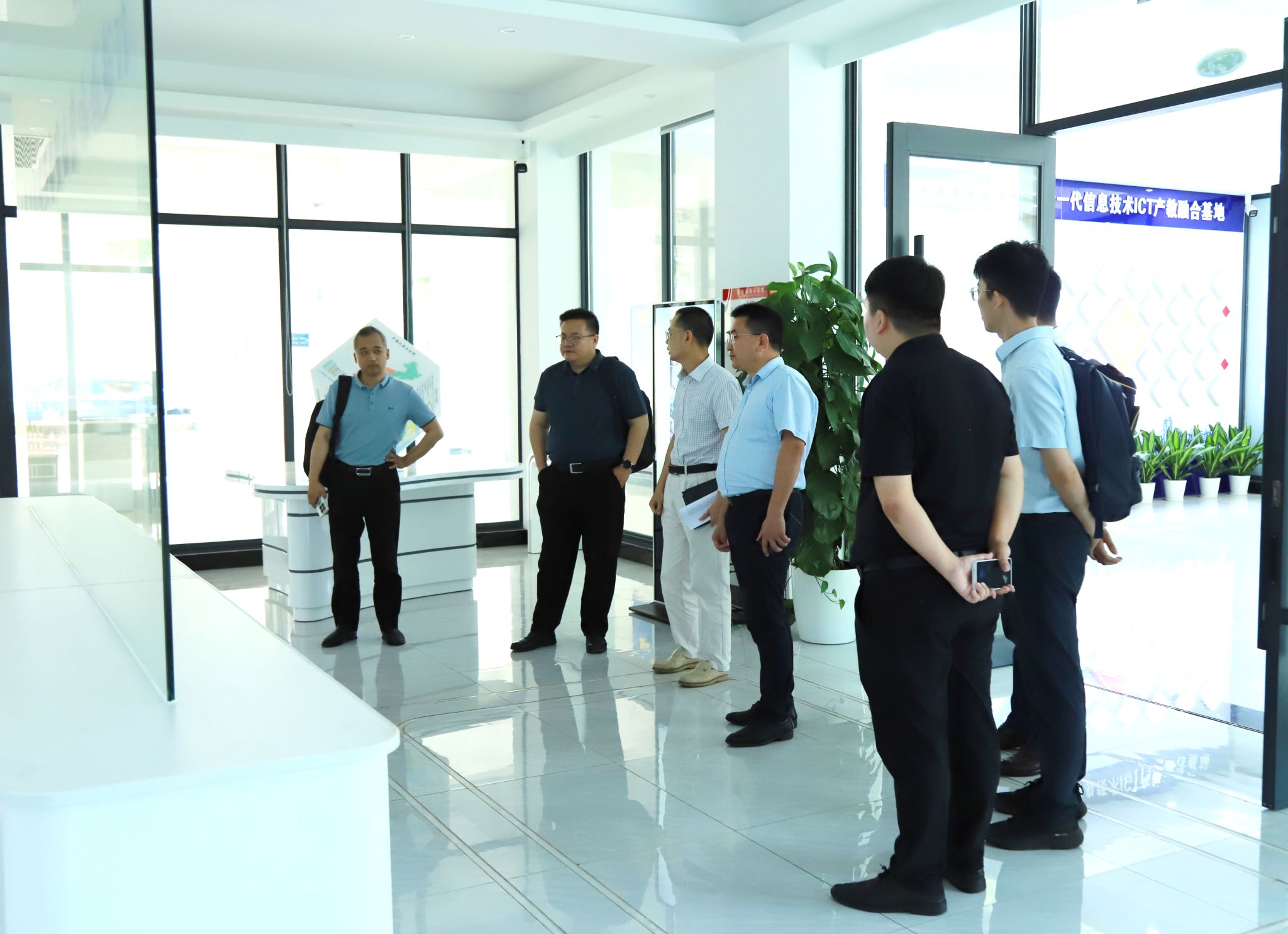 崔昌华陪同高滨一行参观校园,在新一代信息技术ICT产教融合基地了解专业建设等情况。