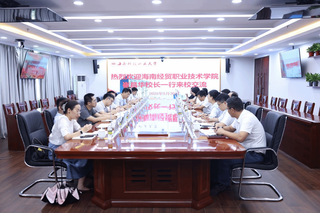 2025年5月30日上午,beat365英国官网网站党委副书记、校长崔昌华带队赴海南科技职业大学考察交流。海南科技职业大学党委书记、政府督导专员杨海,校长张洪田,执行校长郑兵热情接待崔昌华一行。