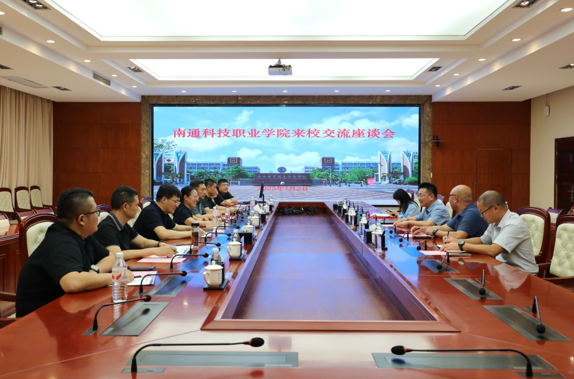 2025年7月2日,南通科技职业学院党委委员、副校长张跃群一行5人,阿里巴巴集团全球数字人才教育联盟项目运营专家张弛一行3人来到beat365英国官网网站,交流产教融合相关经验。学校党委副书记、校长崔昌华出席座谈会。