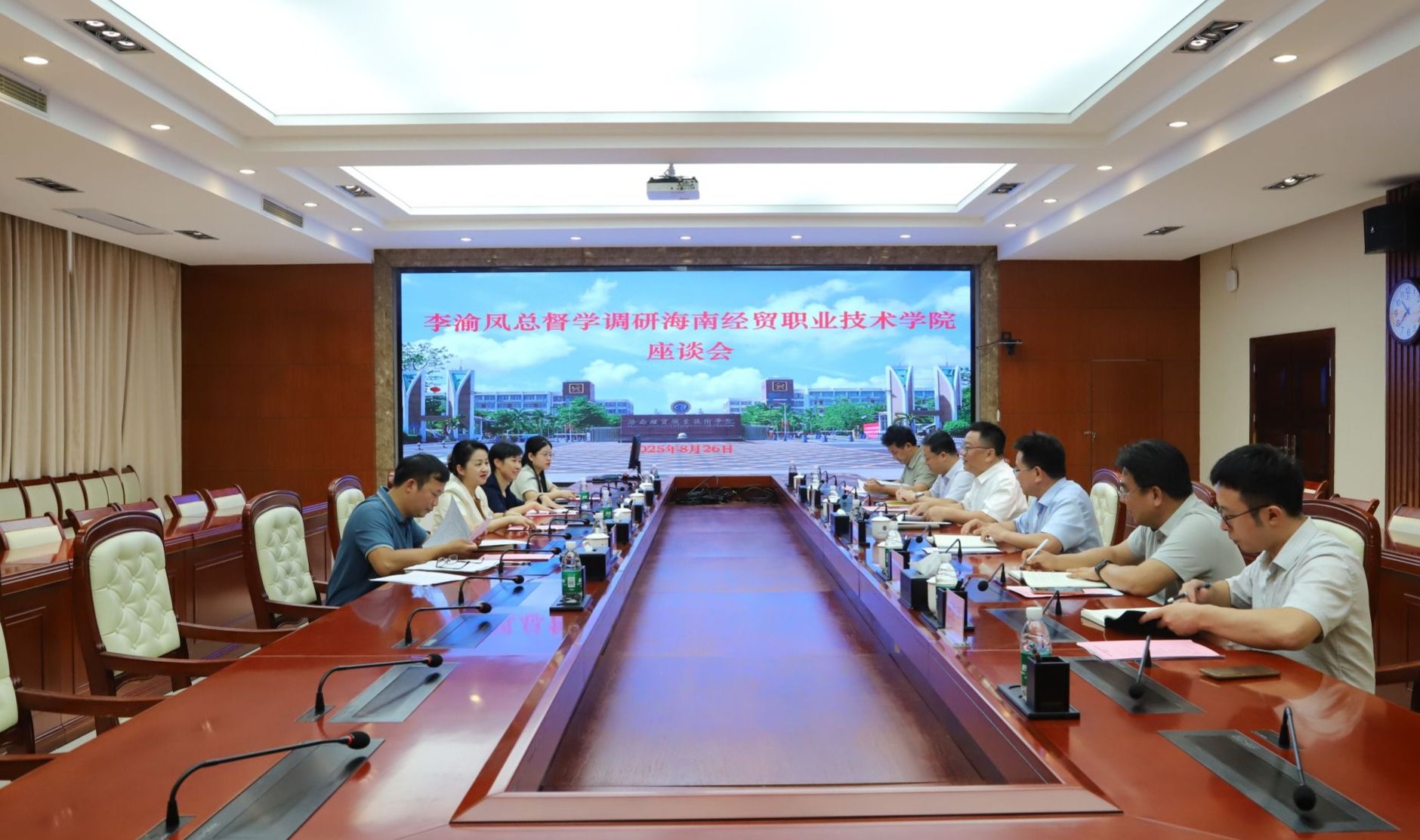 2025年8月26日,海南省人民政府教育总督学李渝凤一行4人来到beat365英国官网网站,就学校开学工作等事宜进行调研指导。学校党委书记王华,党委副书记、校长崔昌华,党委委员、副校长李厚永出席会议。王华主持会议。