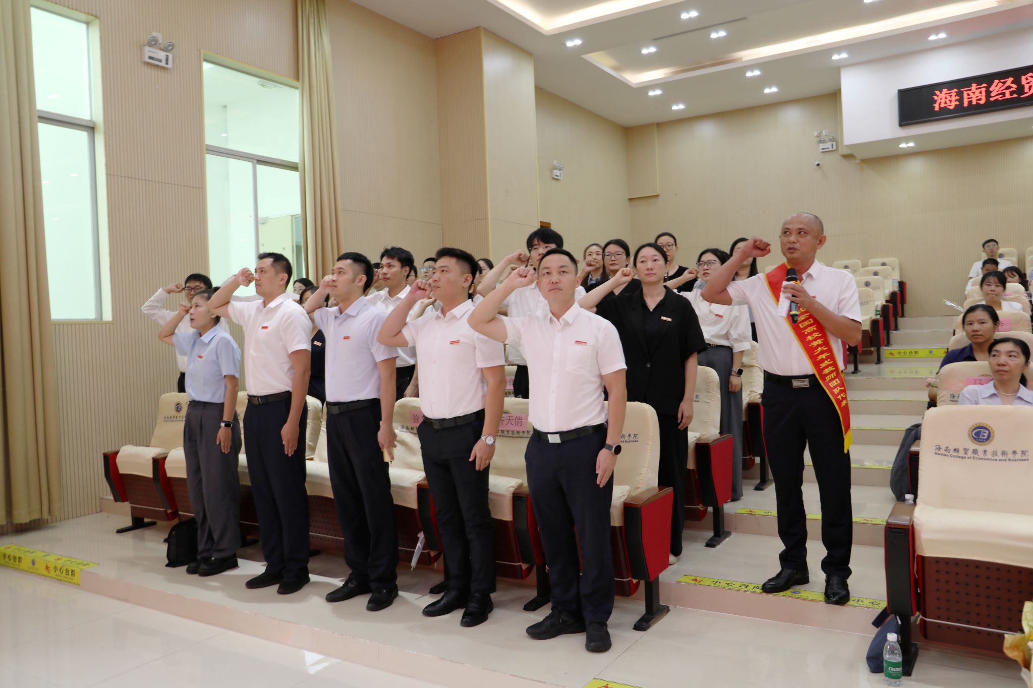 汇聚新力量,共赴新征程。从去年9月至今,全校共迎来28名新教师,为学校发展注入了新鲜血液。为欢迎他们加入海经贸大家庭,学校特在表彰大会上举行入职仪式。校领导为新入职教师代表佩戴学校徽章。