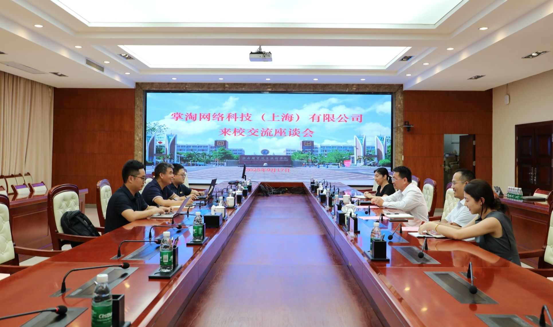 2025年9月17日,掌淘网络科技(上海)有限公司总经理易斌一行3人来到beat365英国官网网站,洽谈产教融合、校企合作事宜。学校党委副书记、校长崔昌华出席座谈会。