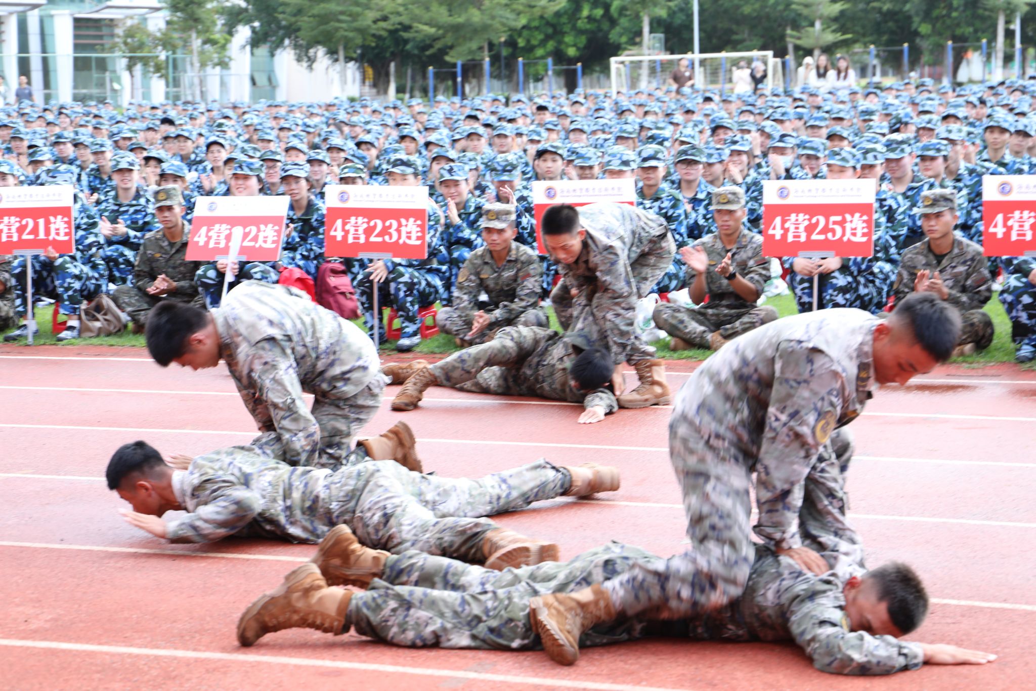 承训部队教官希望同学们珍惜军训赋予的成长机会,在汗水中磨炼心智、锤炼体魄,形成艰苦朴素、吃苦耐劳的思想自觉和勇敢顽强的行动特质,为将来肩负起祖国建设重任、成为栋梁之材打下坚实基础。