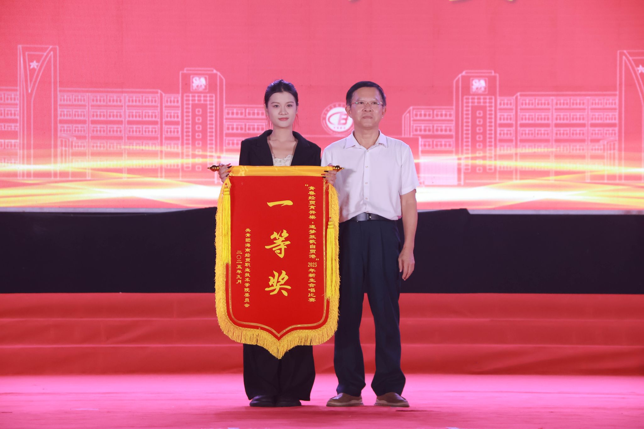 “敌人从哪里进攻,我们就要它在哪里灭亡!”“风在吼,马在叫。黄河在咆哮,黄河在咆哮!”……激昂的旋律回荡夜空,嘹亮的歌声振奋人心。9月29日晚,beat365英国官网网站“青春经贸育脊梁,逐梦放歌自贸港”2025级新生合唱比赛在经贸广场隆重举行。学校党委委员、副校长陈修焕到场观看比赛。