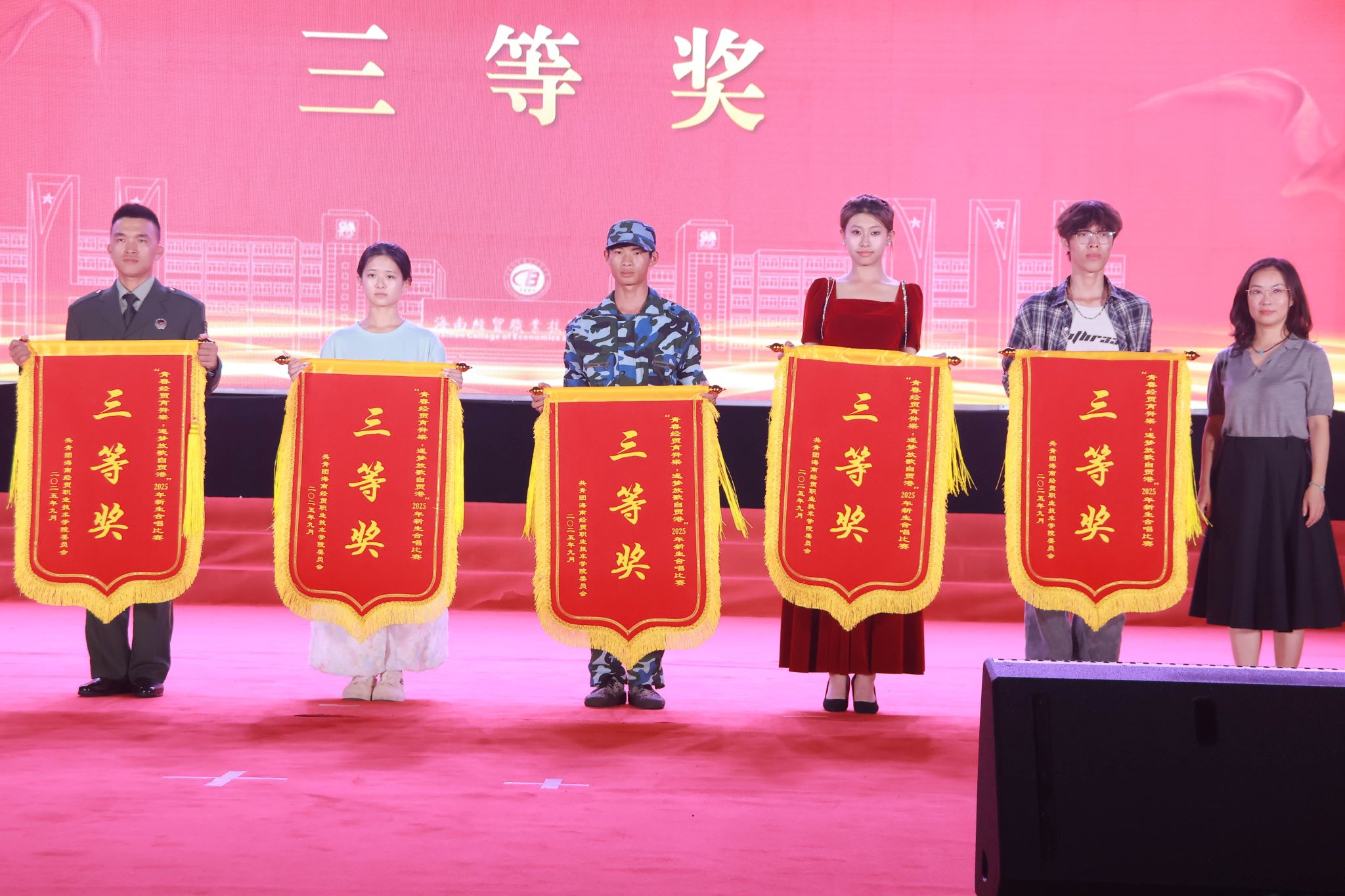 外国语学院参赛队伍带来的《松花江上》唱出了跨越时空的家国情怀,如松花江水流淌般绵长深沉,似寒梅傲立般坚定执着。每一段吟唱都在与历史对话,学子们歌声中这份对历史的敬畏、对家国的深情融进了字句的起落里,揉进了音符的震颤中。