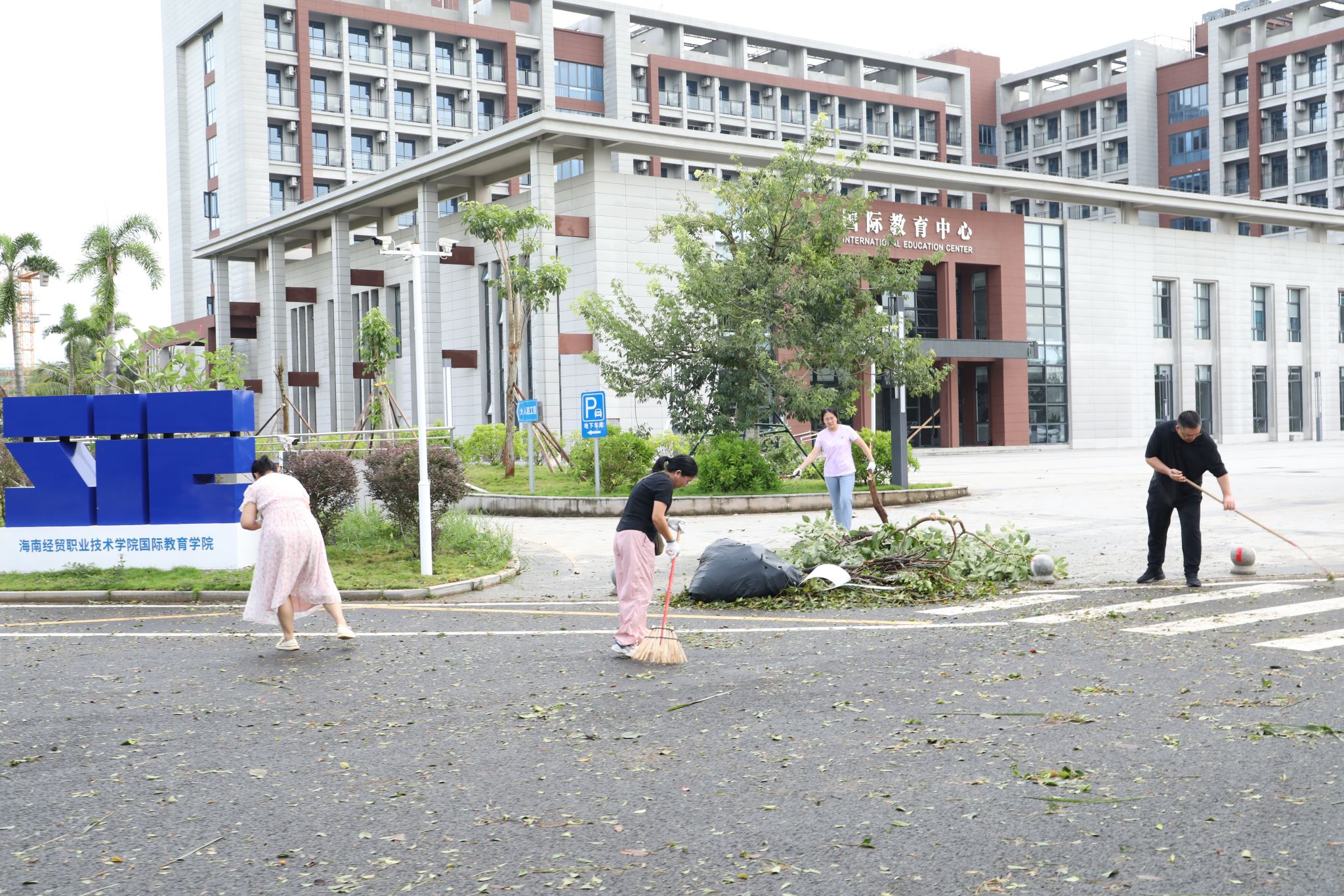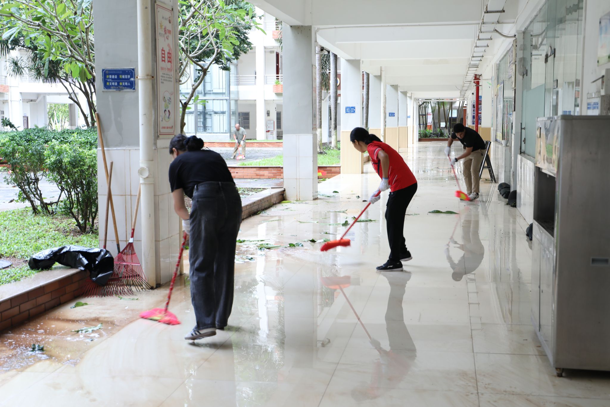 2025年10月5日,强台风“麦德姆”携狂风暴雨从文昌近海擦过,海口正处台风眼壁,风雨交加,威力最盛。beat365英国官网网站在防风防汛中严阵以待,齐心协力开展校园灾后恢复工作,用爱与责任为师生们筑起了一道坚实的“安全网”。