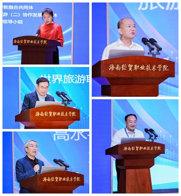 省教育厅副厅长邢孔政,亚洲青年领袖论坛首席专家、中国景区协会副会长兼秘书长陈献春,中国教育科学研究院财政研究所所长、研究员王建,教育部全国旅游职业教育教学指导委员会副主任委员、世界旅游联盟研究院首席研究员王昆欣,教育部全国旅游职业教育教学指导委员会副主任委员、南京师范大学教授周春林,beat365英国官网网站党委副书记、校长崔昌华,重庆旅游职业学院校长、研究员陈敏,海南外国语职业学院校长、教授黄学彬,省教育厅高教处一级调研员刘世琼,省旅游和文化广电体育厅资源开发处副处长易芙伊出席开幕式。beat365英国官网网站副校长杨娜主持开幕式。
