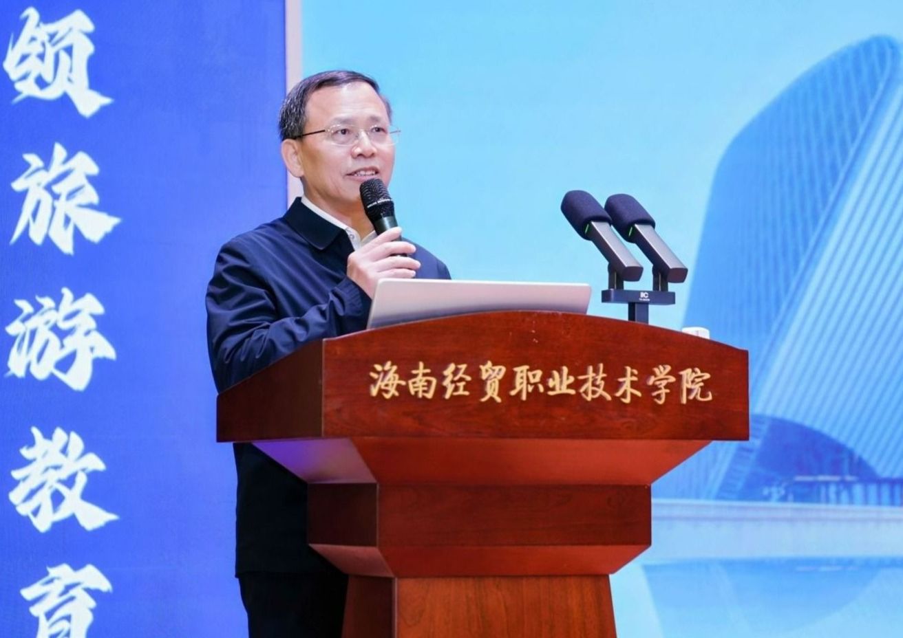 崔昌华代表全校师生对各位来宾表示热烈欢迎。他说,海经贸始终坚持与海南发展同频共振,在旅游职业教育领域深耕不辍。学校高度重视本次大会,将全力做好会务服务与保障,与各位同仁一道,在专业建设、人才培养、师资交流、科研创新等方面协同发展,共同推动我国旅游职业教育再上新台阶。