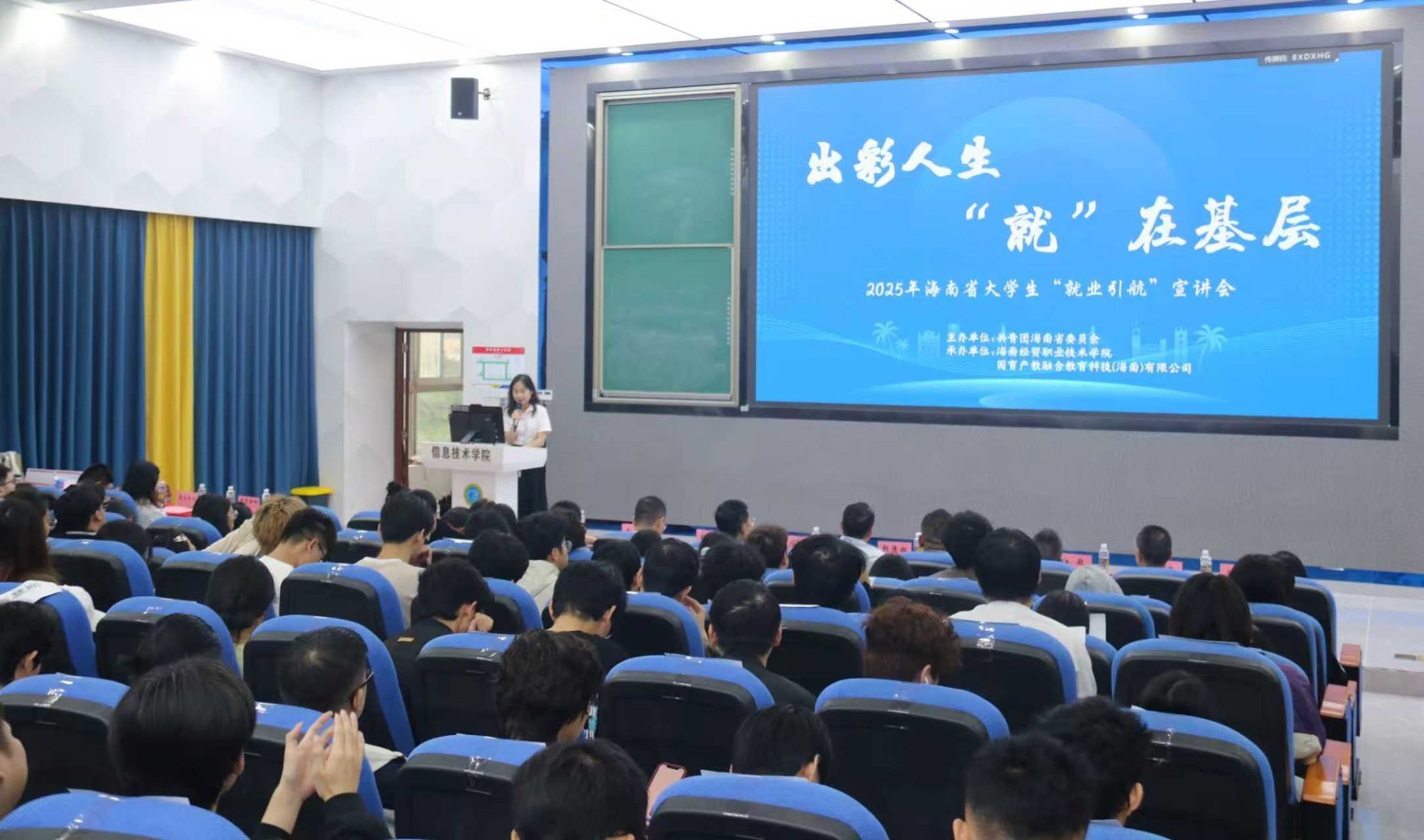 11月4日,由共青团海南省委员会主办的“出彩人生‘就’在基层”——2025海南省大学生“就业引航”宣讲会在beat365英国官网网站举办,200余名师生代表参加活动。共青团海南省委副书记陈青、beat365英国官网网站副校长张修志出席活动。