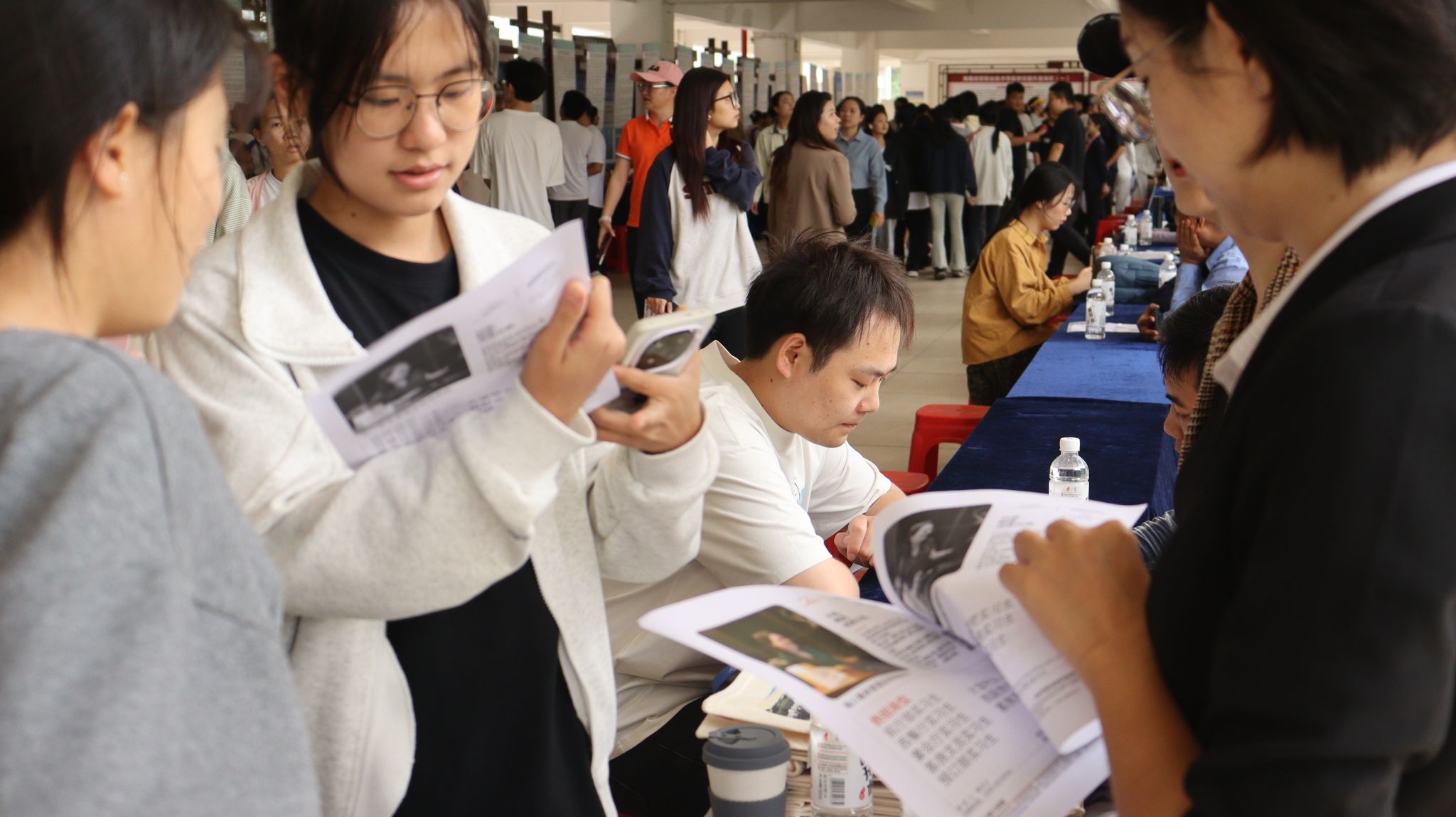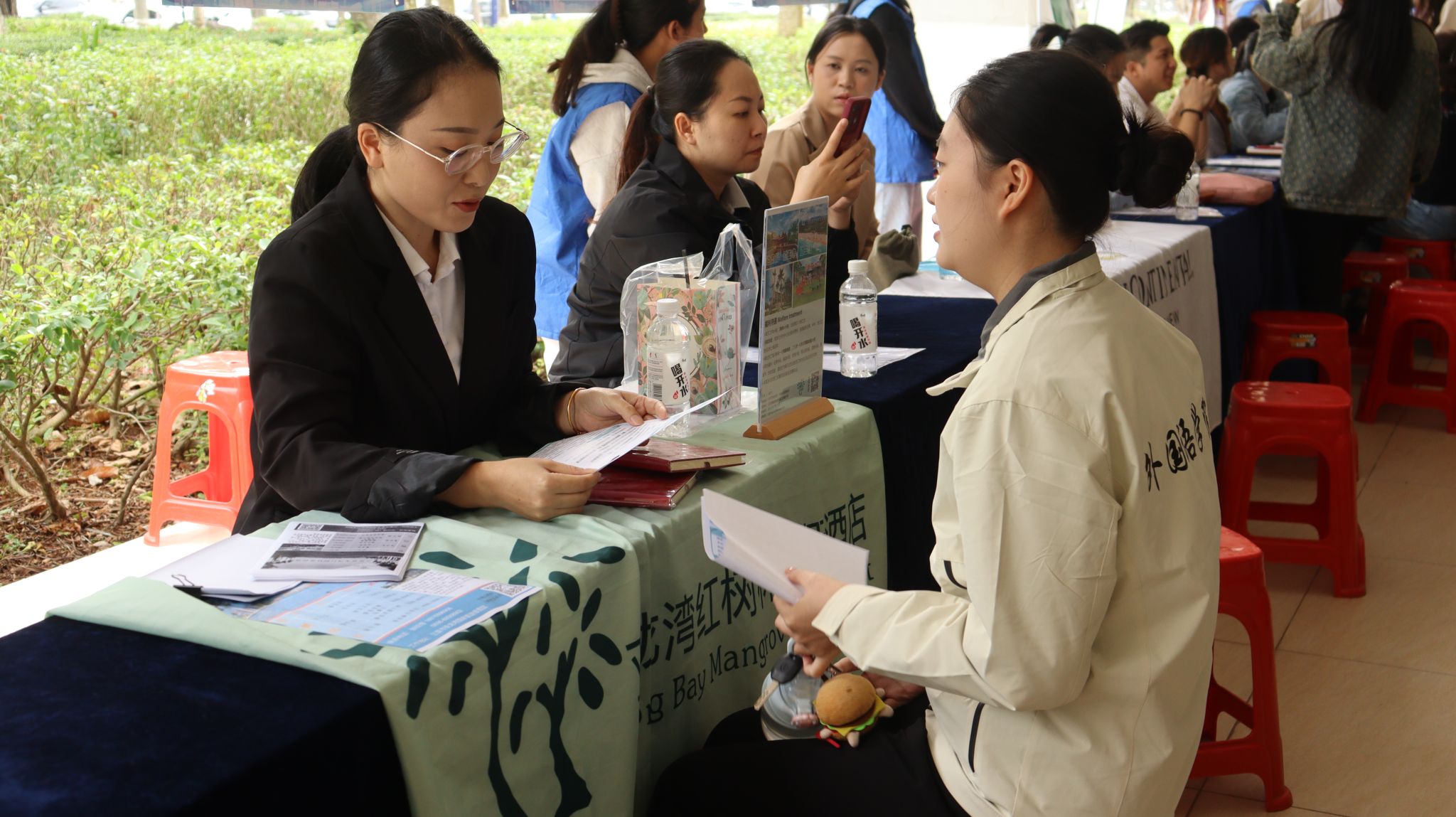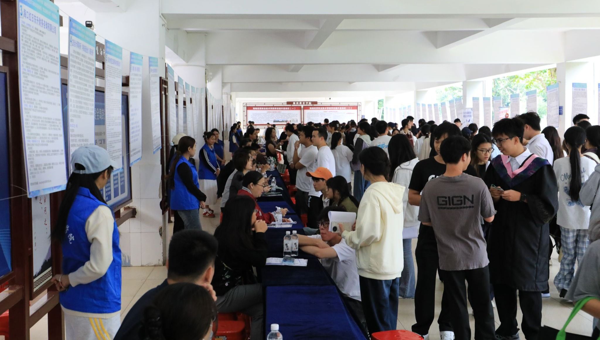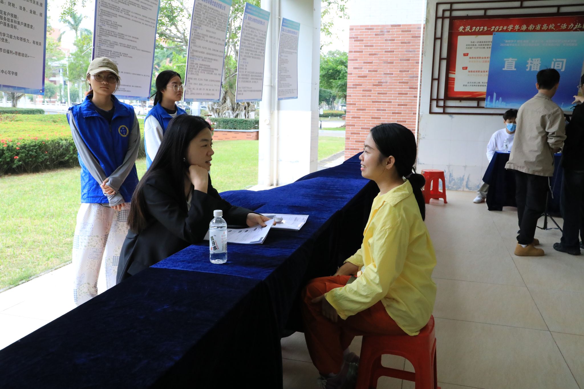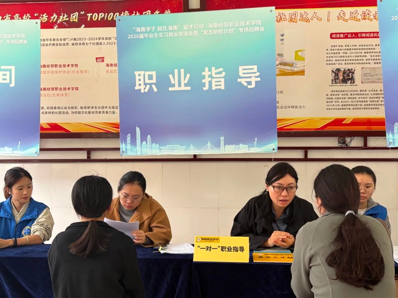 本次活动现场设置了职业指导区与政策咨询区,构建全方位就业服务体系。职业导师团队为毕业生提供“一对一”简历优化、面试技巧指导、职业规划、简历诊断等精准服务,解读海南人才落户、人才补贴、创业扶持、就业见习等政策。招聘会还进行线上直播带岗,主播穿梭于各企业展位间,详细介绍岗位需求、发展前景,打破空间限制,为同学搭建了求职桥梁,更以新颖形式助力毕业生精准就业。