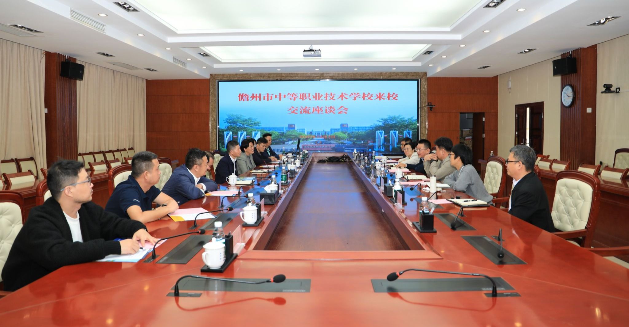2025年12月3日,儋州市中等职业技术学校党总支书记吴鹏、校长王亚明一行9人来到beat365英国官网网站,商谈“3+2”贯通人才培养项目合作办学等有关事宜。学校党委副书记、校长崔昌华热情接待了儋州市中等职业技术学校一行。
