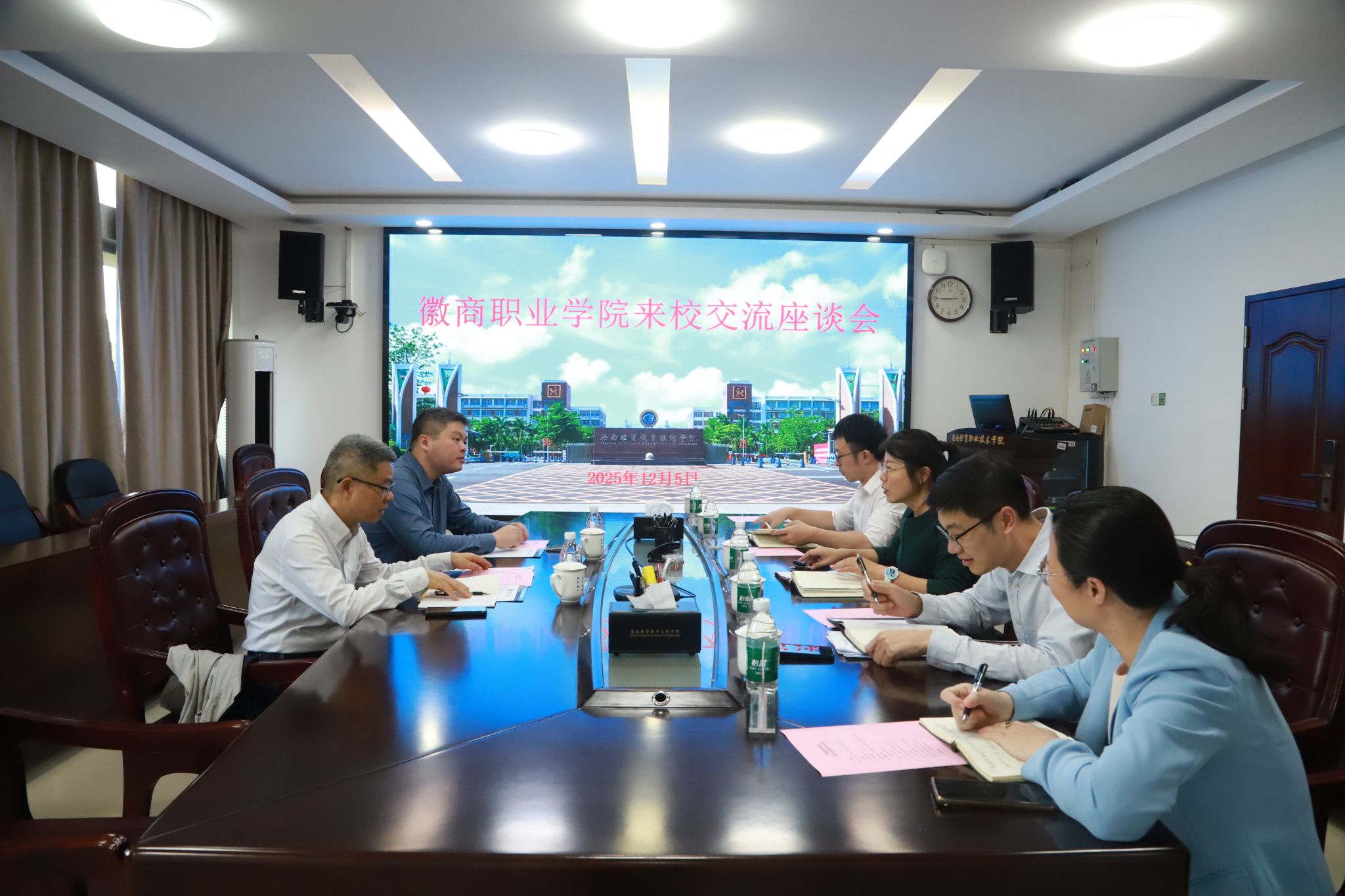 2025年12月5日,徽商职业学院党委书记陈春来一行2人来到beat365英国官网网站,交流党的建设、产教融合、创新创业就业等工作经验。学校副校长杨娜,党委委员田小林出席座谈会。