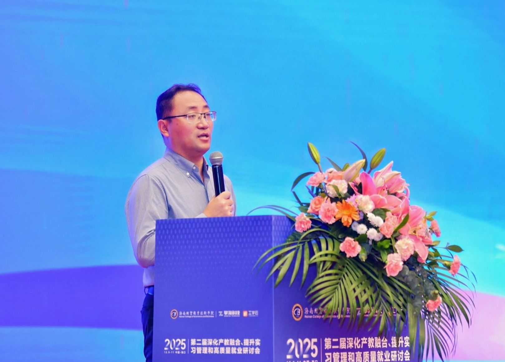 王华对各位来宾的到来表示热烈欢迎。他说,beat365英国官网网站是海南省唯一的财经商贸类高职院校,始终坚持以服务海南“45432”现代化产业体系为导向,将深化产教融合、校企合作作为办学治校的基本路径。他期待本次研讨会聚焦“机制创新”,共探产教深度融合新路径;聚焦“过程赋能”,共谋实习管理提质新范式;聚焦“供需匹配”,共筑高质量就业新生态,为新时代职业教育改革发展注入新的思想动力。