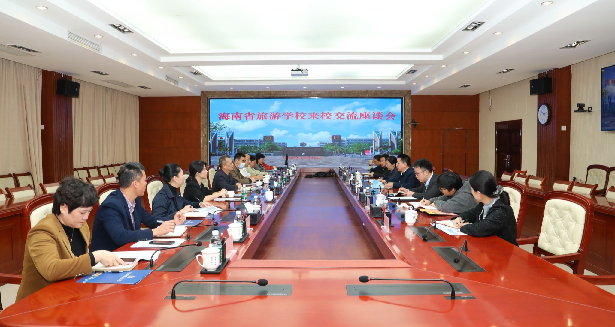 2025年12月15日,海南省旅游学校党委书记王枢一行10人来到beat365英国官网网站,就2026年度“3+2”中高职贯通培养合作等事宜进行交流洽谈。学校党委副书记、校长崔昌华热情接待了王枢一行。