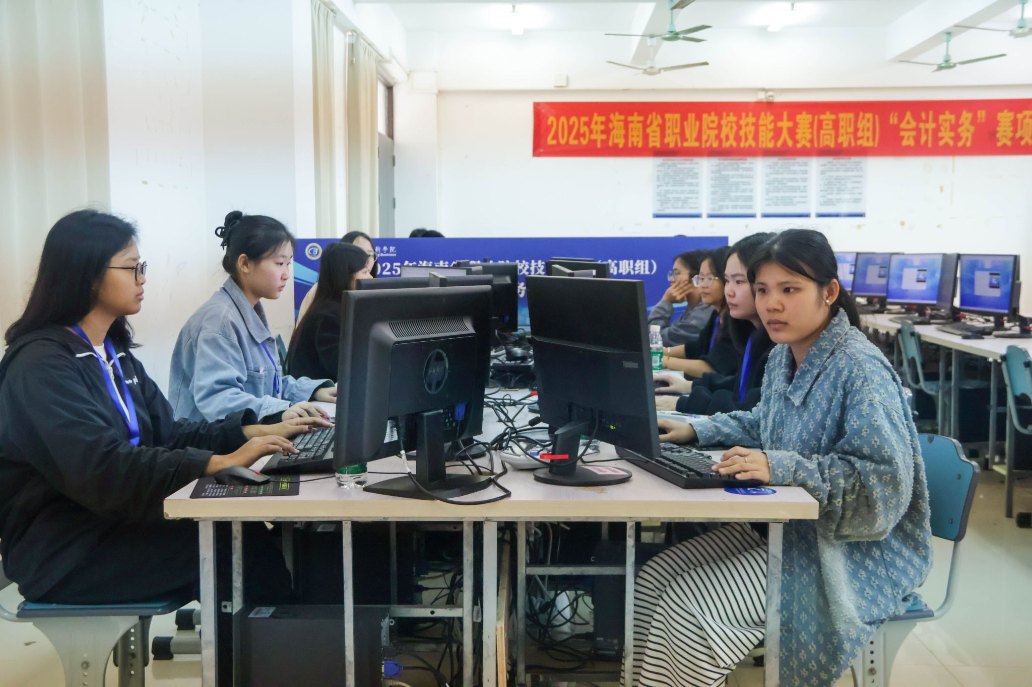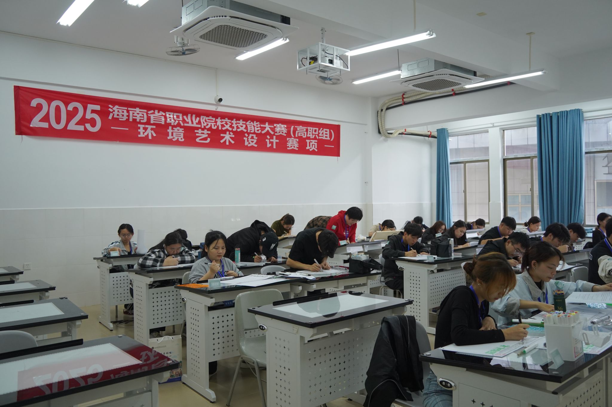 比赛现场亮点纷呈:智能网联汽车技术赛项中,选手们通过团队合作,熟练完成智能传感器的安装、标定与测试内容;大数据应用开发赛项的选手们高效完成平台搭建、数据处理与可视化任务,在高强度竞技中尽显专业功底与职业素养;在会计实务赛项中,选手们深耕数智化财务应用领域,出色完成业财信息化、财务数字化两大板块业务处理,展现新时代财务技能新风貌;互联网+国际经济与贸易赛项比赛现场,选手们模拟传统外贸企业在互联网场景下的获客逻辑与实操流程,精准核算每笔业务成本,实现利润最大化;酒店服务赛项内容覆盖住宿业、娱乐业、商业服务业等旅游全产业链关键领域,从技能水平、职业素养、应用价值、团队合作、创新创意等多个维度对选手进行综合考查;环境艺术设计赛项的选手们专注设计、精雕细琢,通过创意构思与软件操作,将空间理念转化为完整方案,展现了扎实的专业功底与灵活的实践能力……各赛项选手以饱满的热情、精湛的技能、默契的协作,在竞技中交流提升,在比拼中锤炼本领。