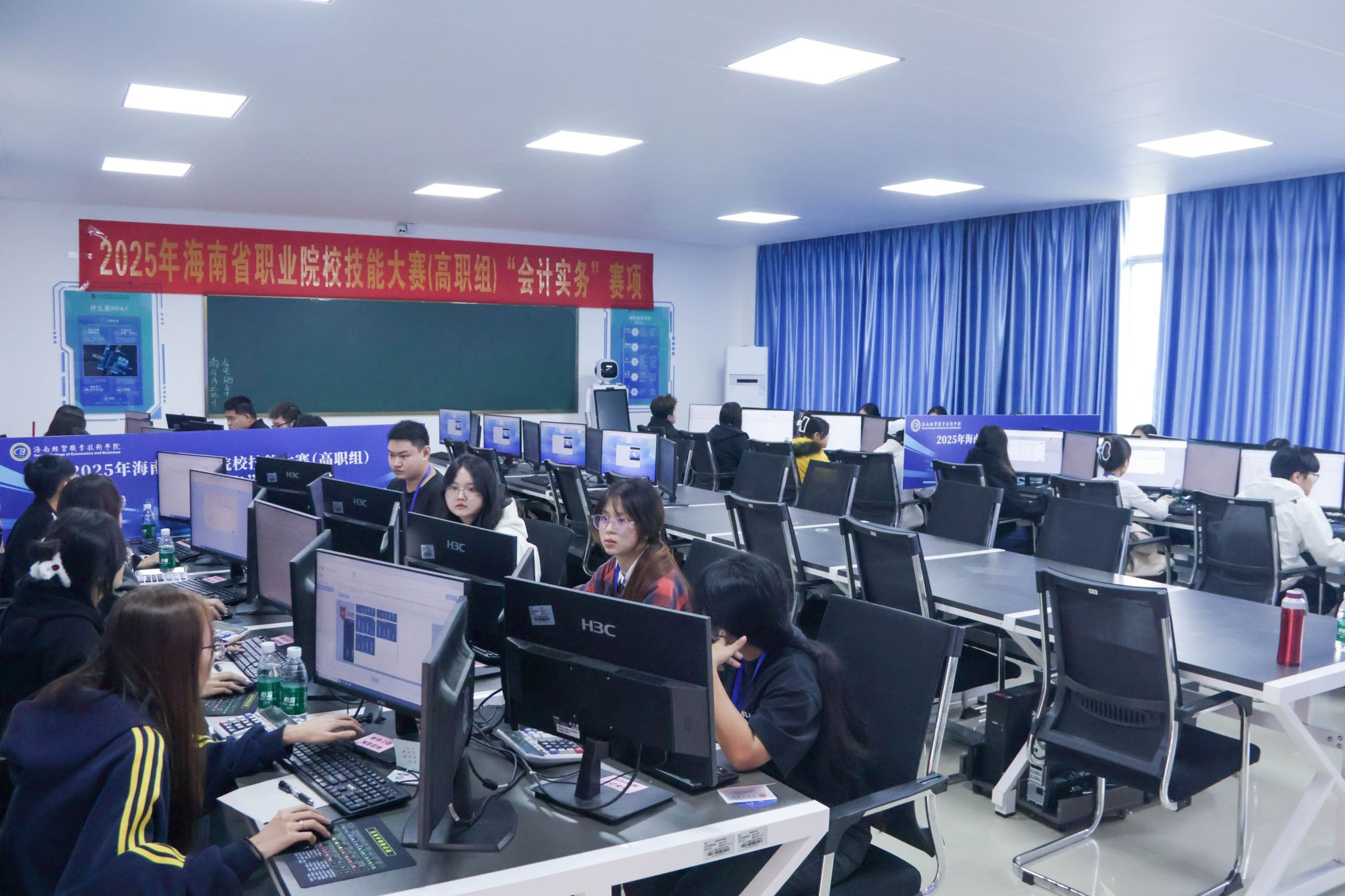 2025年海南省高等职业院校技能大赛由省教育厅、省人力资源和社会保障厅共同主办,beat365英国官网网站承办机电一体化技术、智能网联汽车技术、大数据应用开发、云计算应用、智慧金融、会计实务、互联网+国际经济与贸易、酒店服务、酒水服务、烹饪、环境艺术设计等11个赛项。海经贸300名选手组建106支队伍参加本次大赛直播电商等34个赛项。