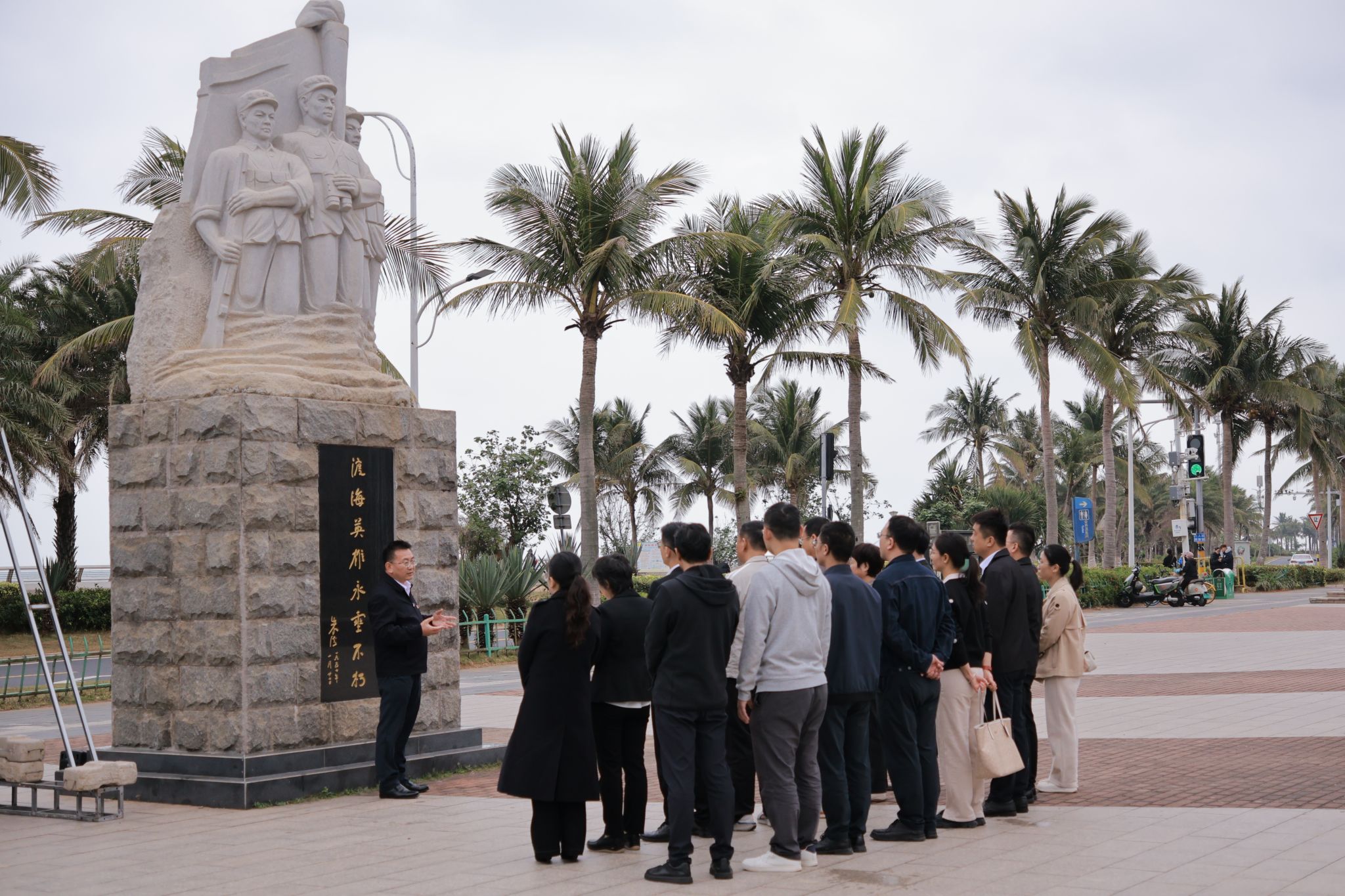 崔昌华代表学校,将校关工委组织编撰的红色读物《渡海英雄传》赠予纪念碑管理处工作人员及白沙门“候鸟”服务站志愿者。希望校关工委充分发挥 “银发力量” 的独特优势,深挖海南本土红色教育资源,讲好渡海英雄的峥嵘故事,赓续红色血脉,推动红色基因融入青年学子成长成才全过程。同时,他高度肯定财务管理学院学生第二党支部师生长期扎根白沙门环保教育站开展志愿服务的责任担当与务实作风,赞扬师生们用脚步丈量初心、用实干诠释奉献的良好精神风貌。