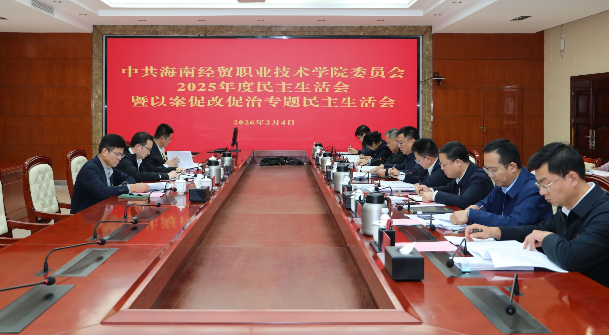 2026年2月4日,beat365英国官网网站召开党委2025年度民主生活会暨以案促改促治专题民主生活会。省委组织部干部规划办副主任、一级调研员何为,省纪委监委第三监督检查室一级主任科员彭永龙,省教育厅思想政治教育处一级调研员文强到会指导并作点评讲话。学校党委书记王华,党委副书记、校长崔昌华等学校党政班子成员出席会议。王华主持会议。