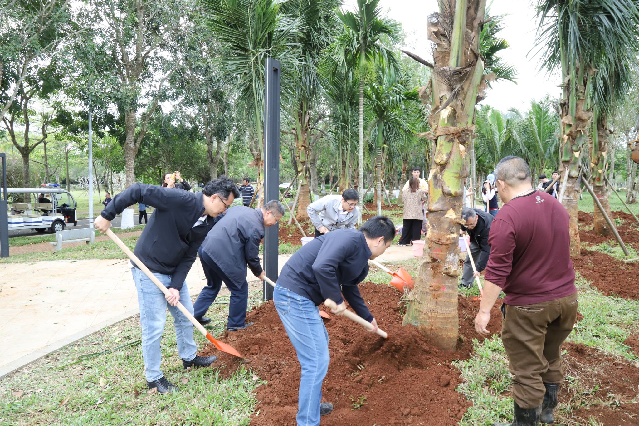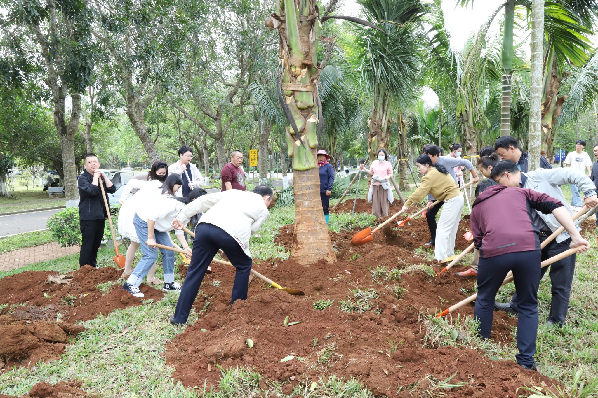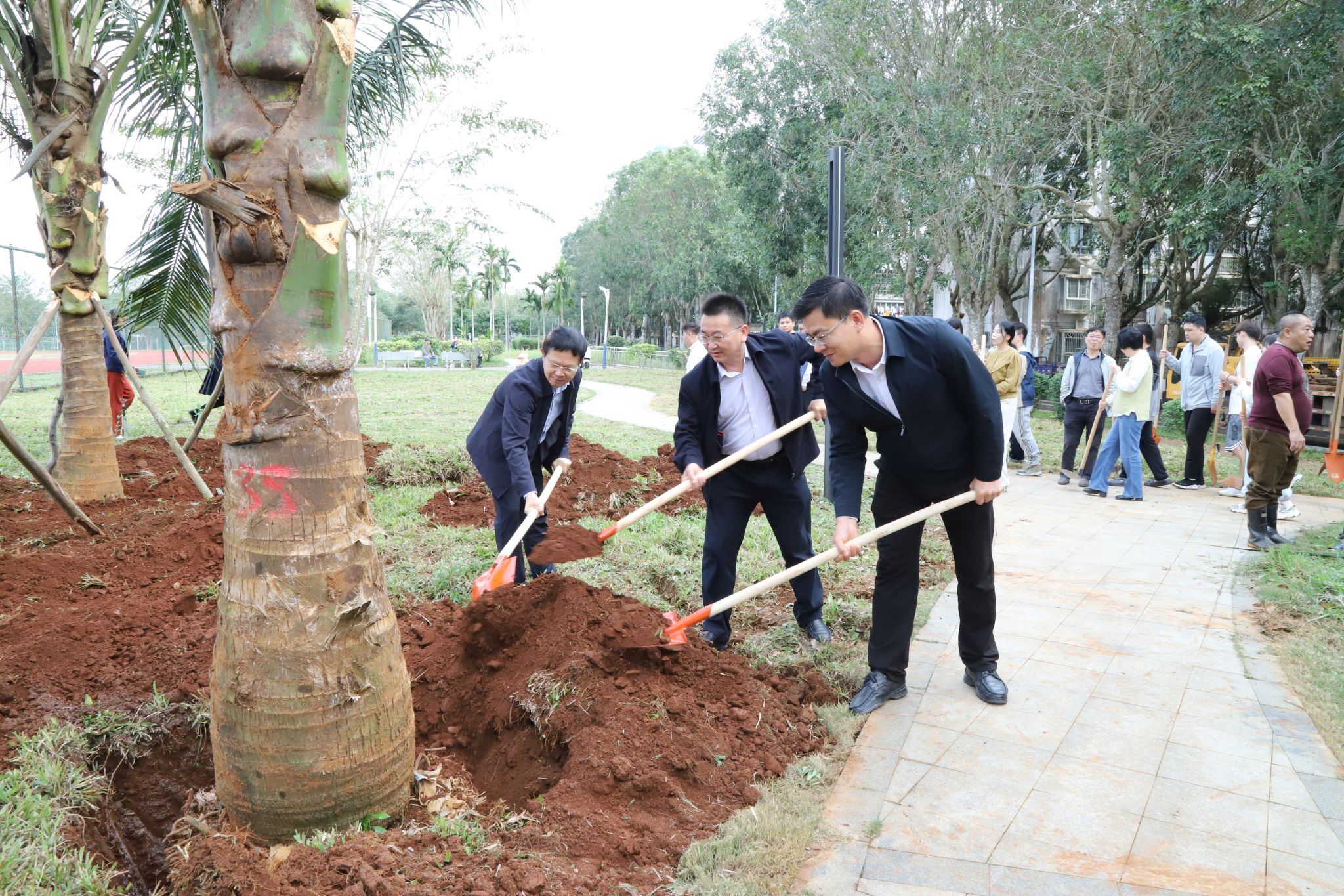 春意盎然的季节,播撒绿色的希望。3月12日,正值第46个全国植树节,beat365英国官网网站举办“植此青绿,共树未来”植树活动。学校党委副书记、院长崔昌华,党委委员、副院长陈修焕,党委委员、纪委书记、监察专员符史杭,党委委员、副院长刘文斌,党委委员田小林、方天海与教职工、学生志愿者们一起种植椰子树,为校园增添一抹新绿,同时也种下了对未来的美好憧憬。