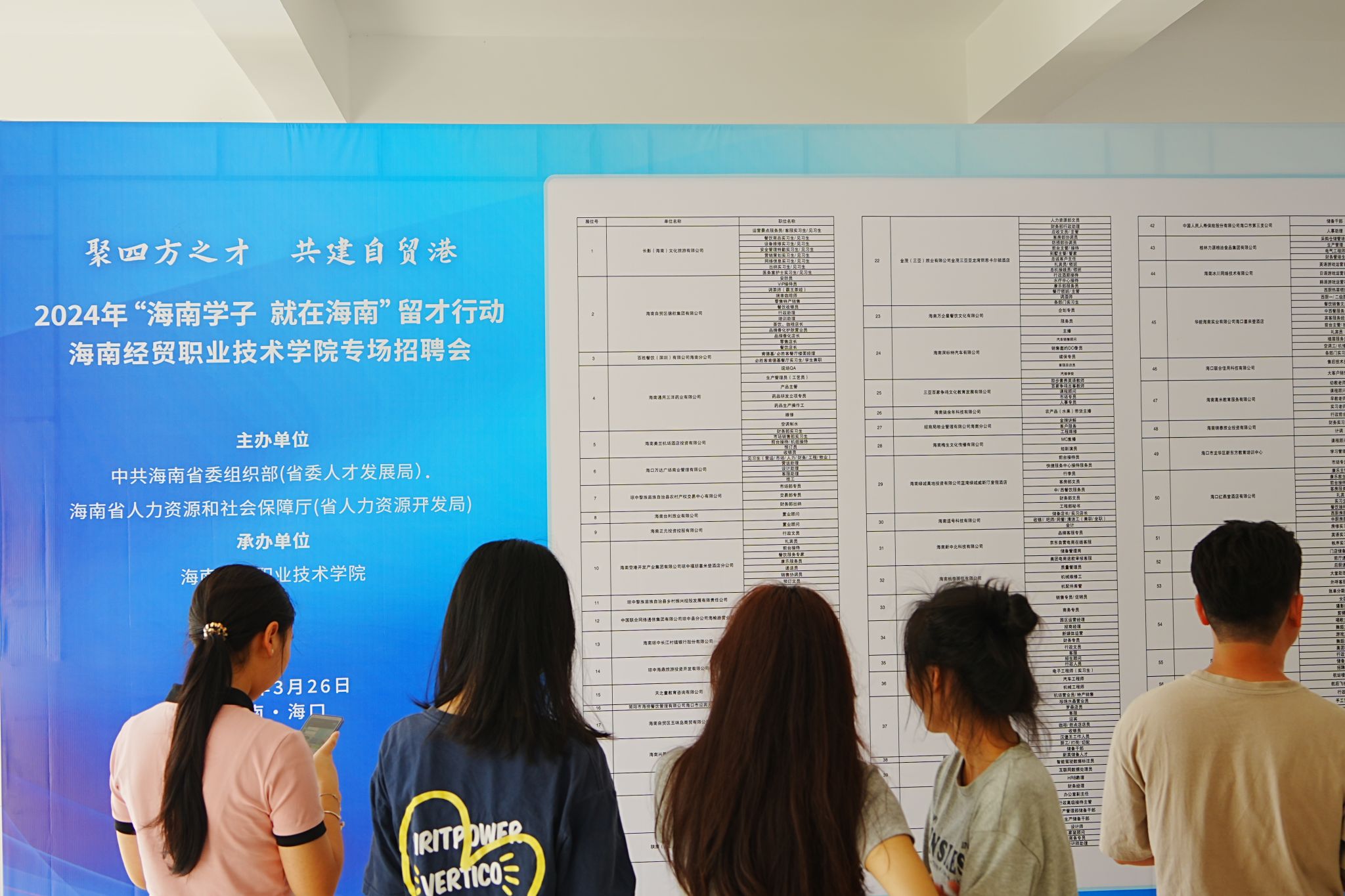 3月26日,beat365英国官网网站举办2024年“海南学子·就在海南”留才行动专场招聘会。80余家用人单位提供2000余个就业岗位,涵盖信息技术、文化传媒、财务会计、教育培训、及酒店餐饮等行业领域,为毕业生择业就业提供了多维的选择方向和富有成长力的发展平台。