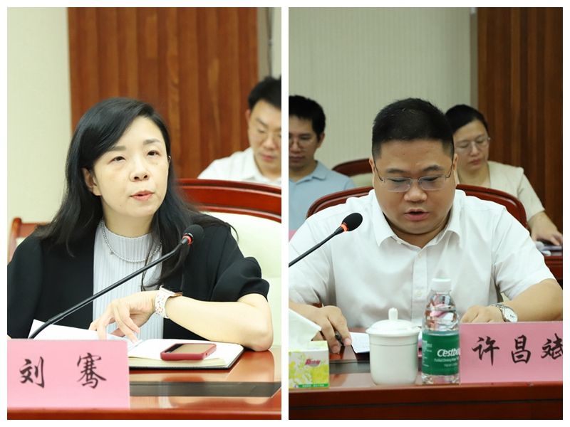 海南工商职业学院副校长刘骞,海南职业技术学院校长助理许昌斌汇报工作