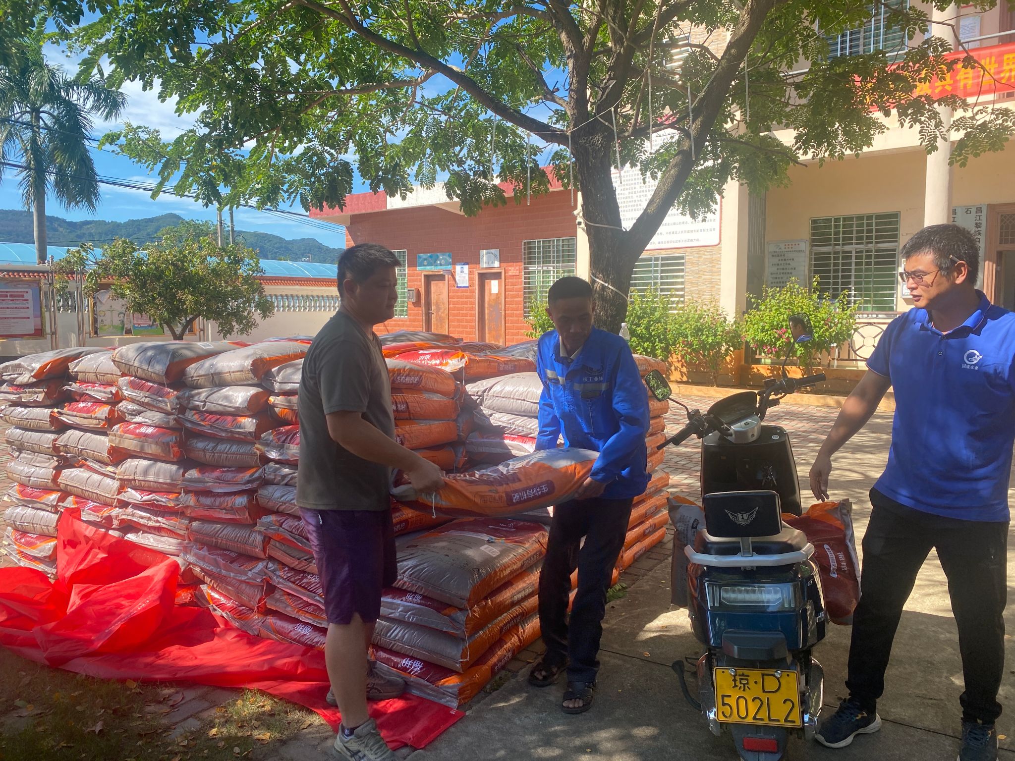▲为水头村捐赠化肥等物资