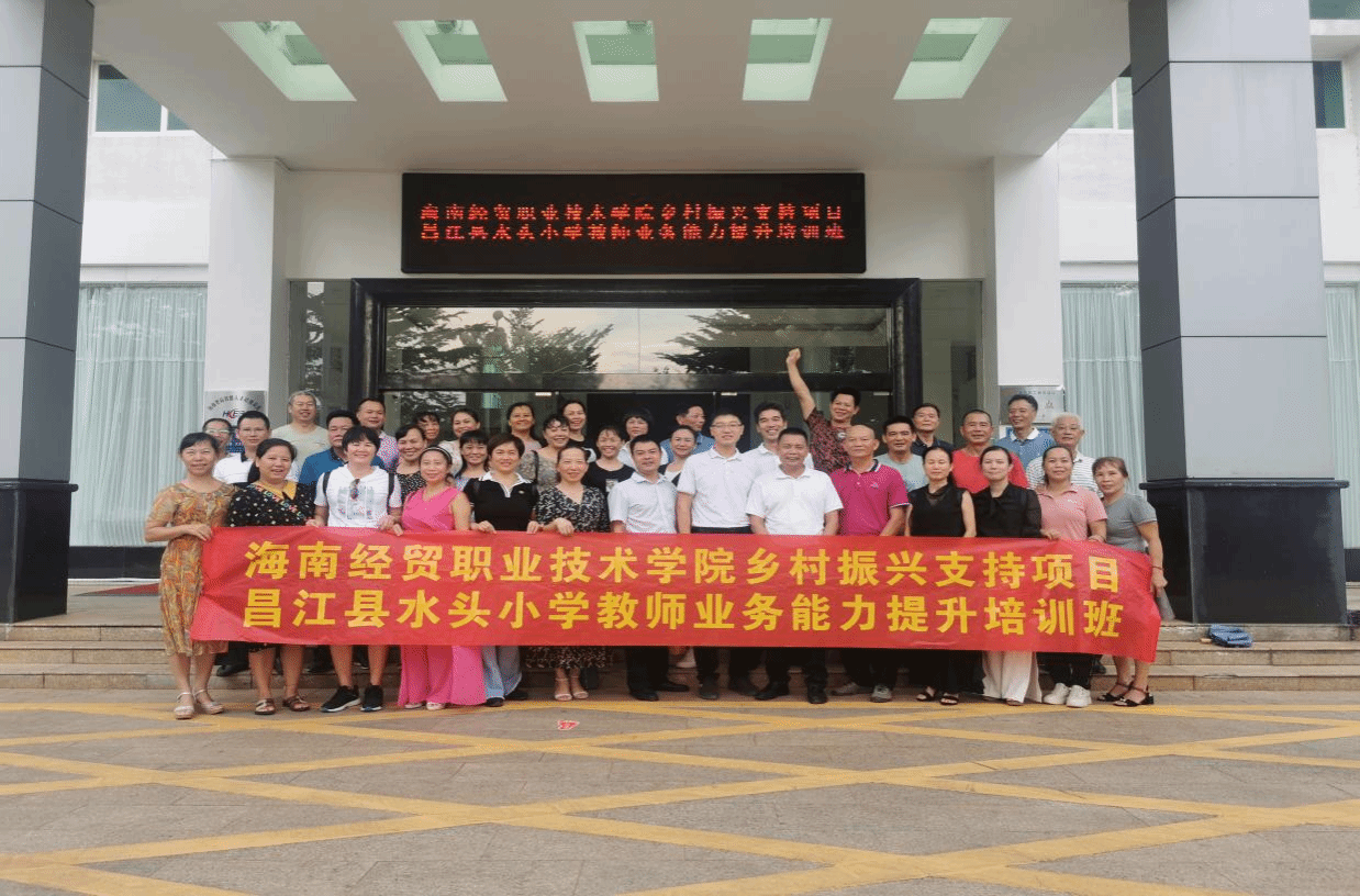 学校充分发挥职业教育优势,为水头籍“小学生+大学生”培养和“农业达人”培树提供人力、物力、智力支撑。加大政策宣传,开展教育帮扶政策全覆盖,鼓励水头村高中毕业生、中职学生报考海经贸。自定点帮扶以来,学校共录取37名水头籍大学生,实行“两免一岗”教育帮扶政策,累计资助120万余元;优化教育资源,投入近60万元提升水头小学办学条件,举办水头小学教学能力提升培训班,给教师“充电”,为教学“赋能”。培树农业达人,定期为水头村民举办乡村振兴政策解读、农村创新创业、电商运营、农村实用技能等培训,2023年培训致富带头人、种植大户等178人。组织综合素养提升培训,发挥职业教育技能培训和师资优势,为村两委干部、乡村振兴工作队队员举办“村干部礼仪和心态塑造”“乡村治理讲解接待”等公益培训。