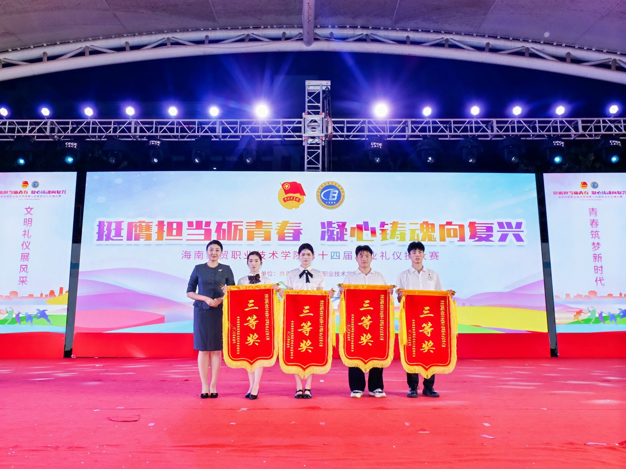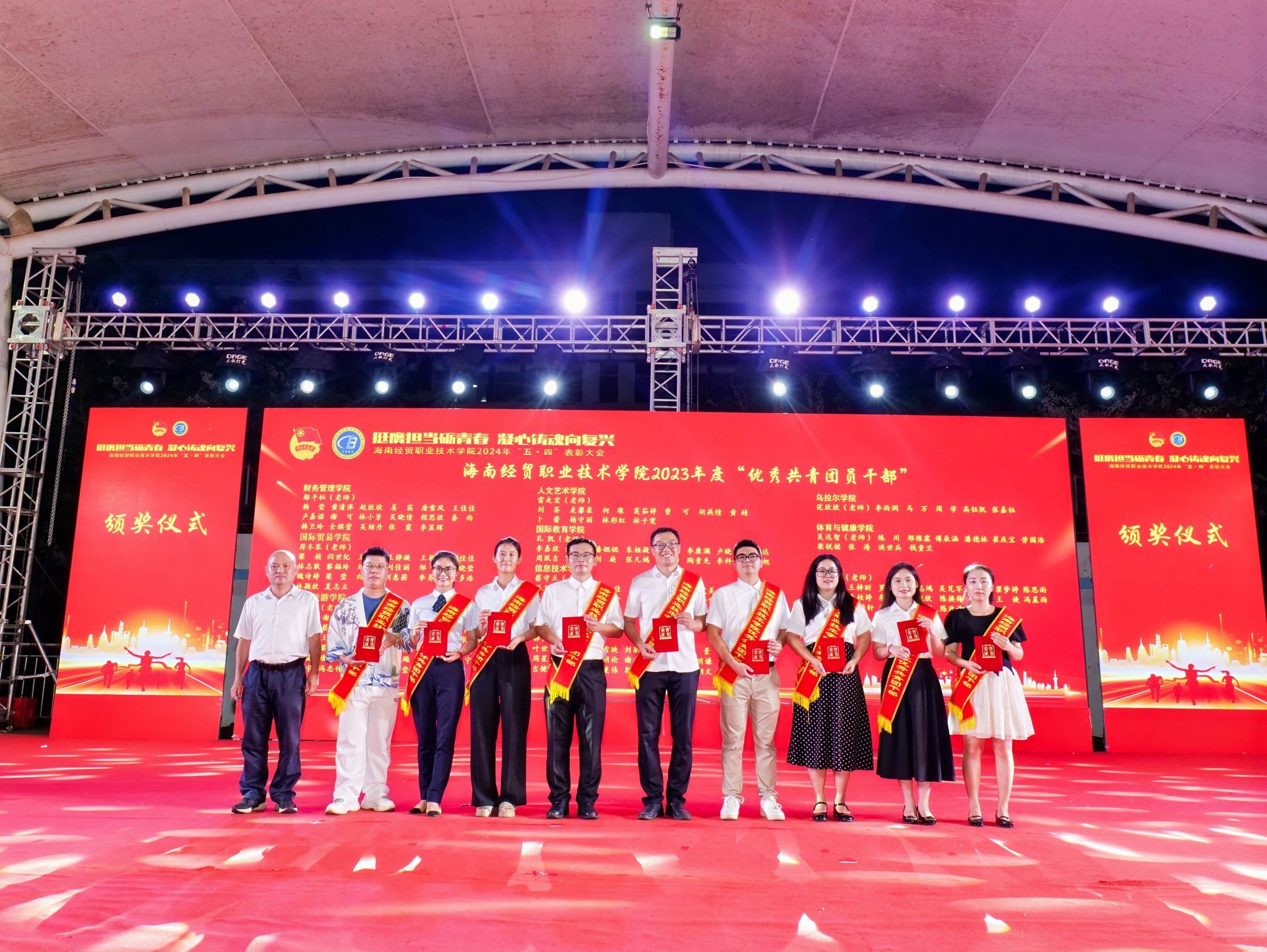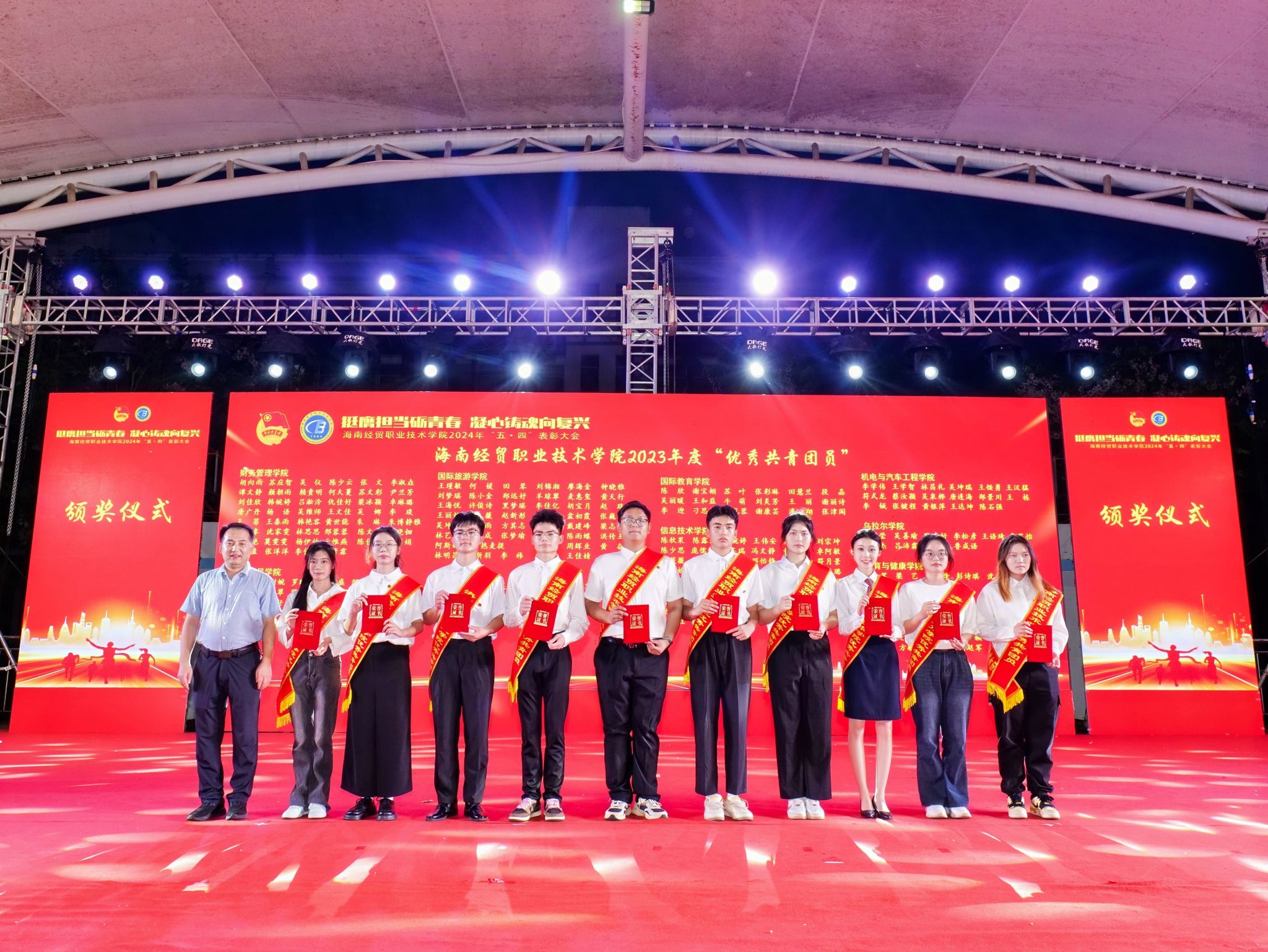 大会对获奖个人和集体进行表彰。李泽铖等3名同学荣获“经贸自强之星标兵”,韩雨辰等12名同学荣获“经贸自强之星”,财务管理学院、国际教育学院、信息技术学院等3个集体荣获“五四红旗团总支”,2022级大数据与财务管理(3+2)本科1班团支部等33个集体荣获“五四红旗团支部”,鄢平牡等10名教师荣获“优秀共青团干部”,韩莹等186名同学荣获“优秀共青团干部”,胡向雨等257名同学荣获“优秀共青团员”。