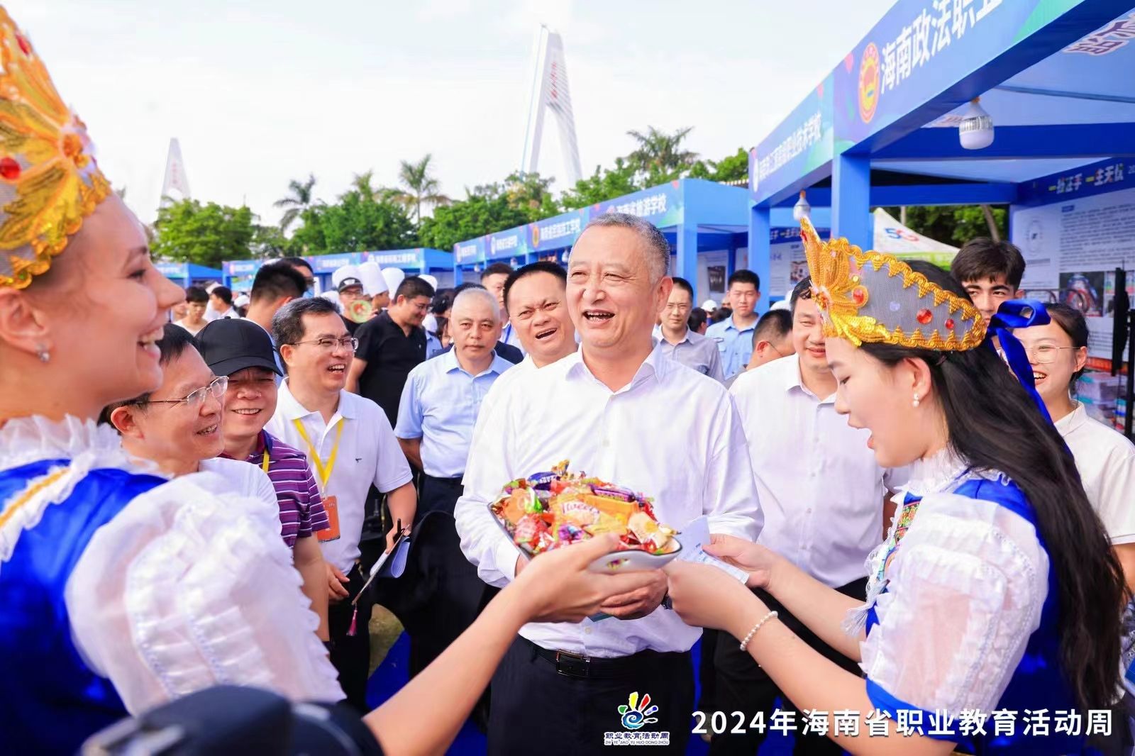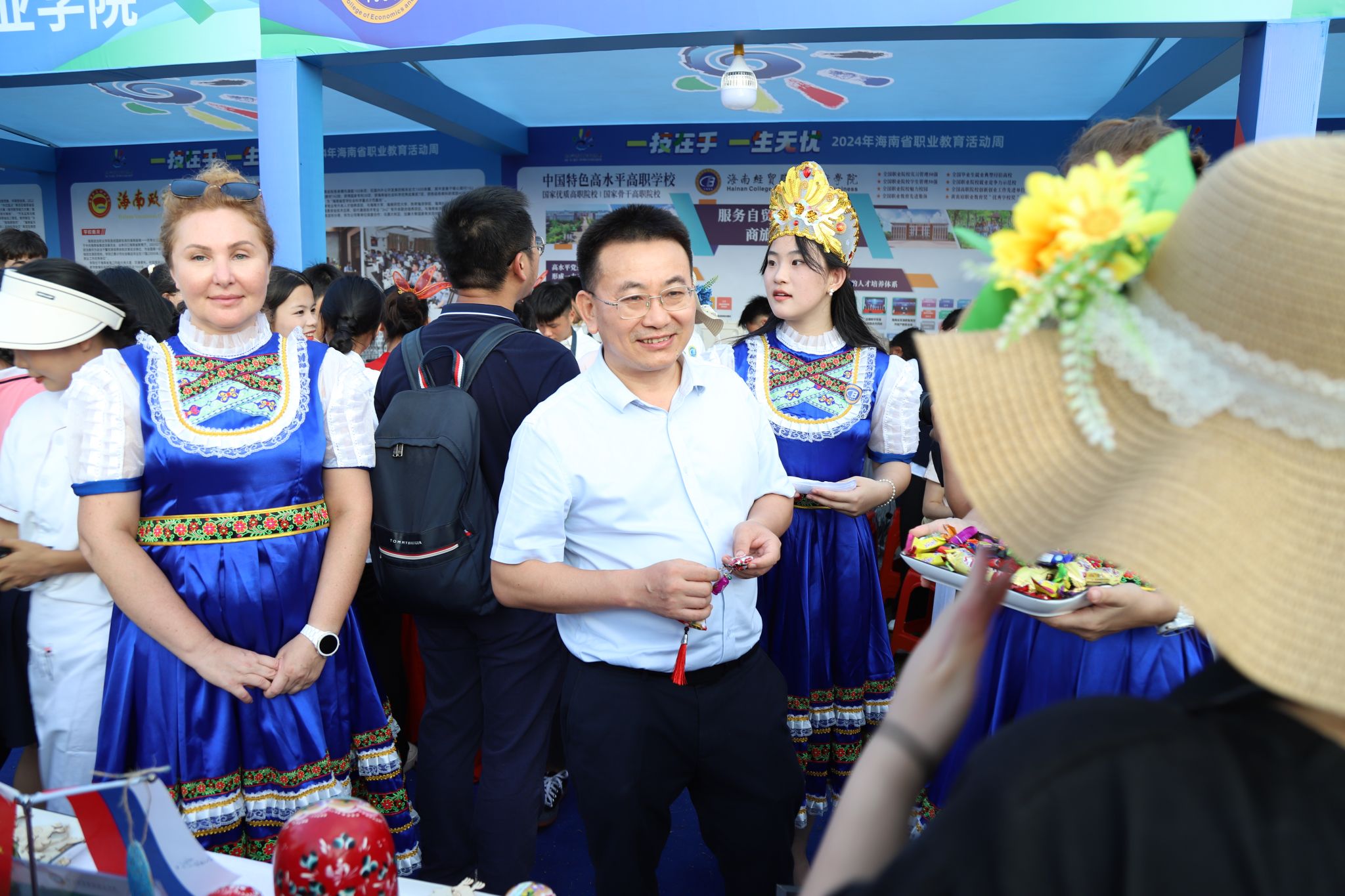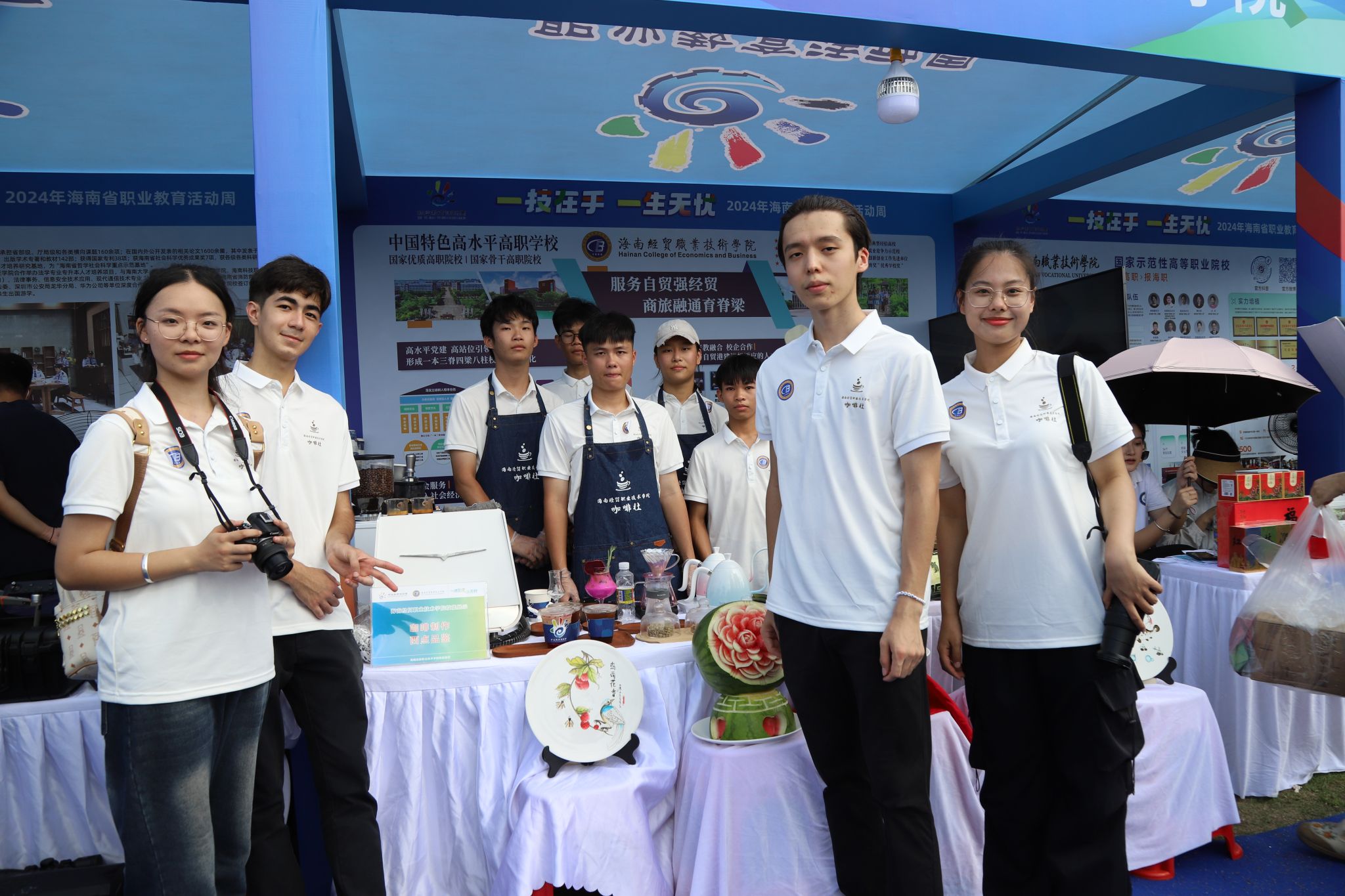 2024年5月14日,海南省教育厅主办的“一技在手 一生无忧”第十届职业教育活动周在海口启动。beat365英国官网网站的展位热闹非凡,同学们神采奕奕地向市民朋友和各中高职学校的学生们介绍拿手作品,展示专业技能。大家在展位前排起长队、热情互动。
