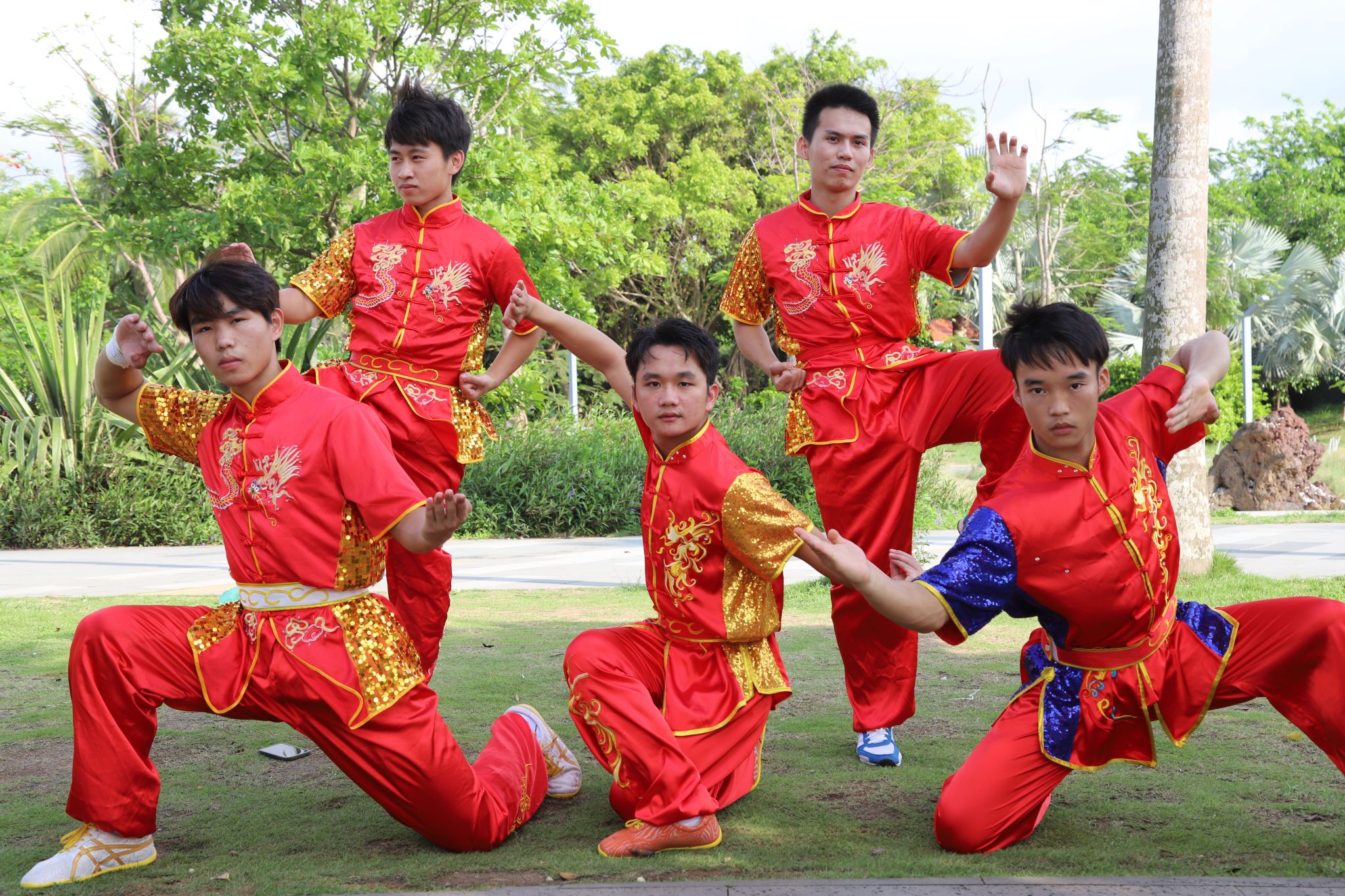 舞花刀、骑龙步、虚步亮掌、点棍撩棍……体育与健康学院学生洪世兵、罗贤涛、许云堡、谢红强、黎家俊组成的“武魂”五人组,带来了精彩的棍术、单刀、醉拳、双人南拳等武术表演,一招一式刚劲有力,一拳一脚收放自如,把现场气氛推向高潮。大家纷纷驻足,被气势如虹的精彩表演所吸引,纷纷拍照、录像,鼓掌叫好。
