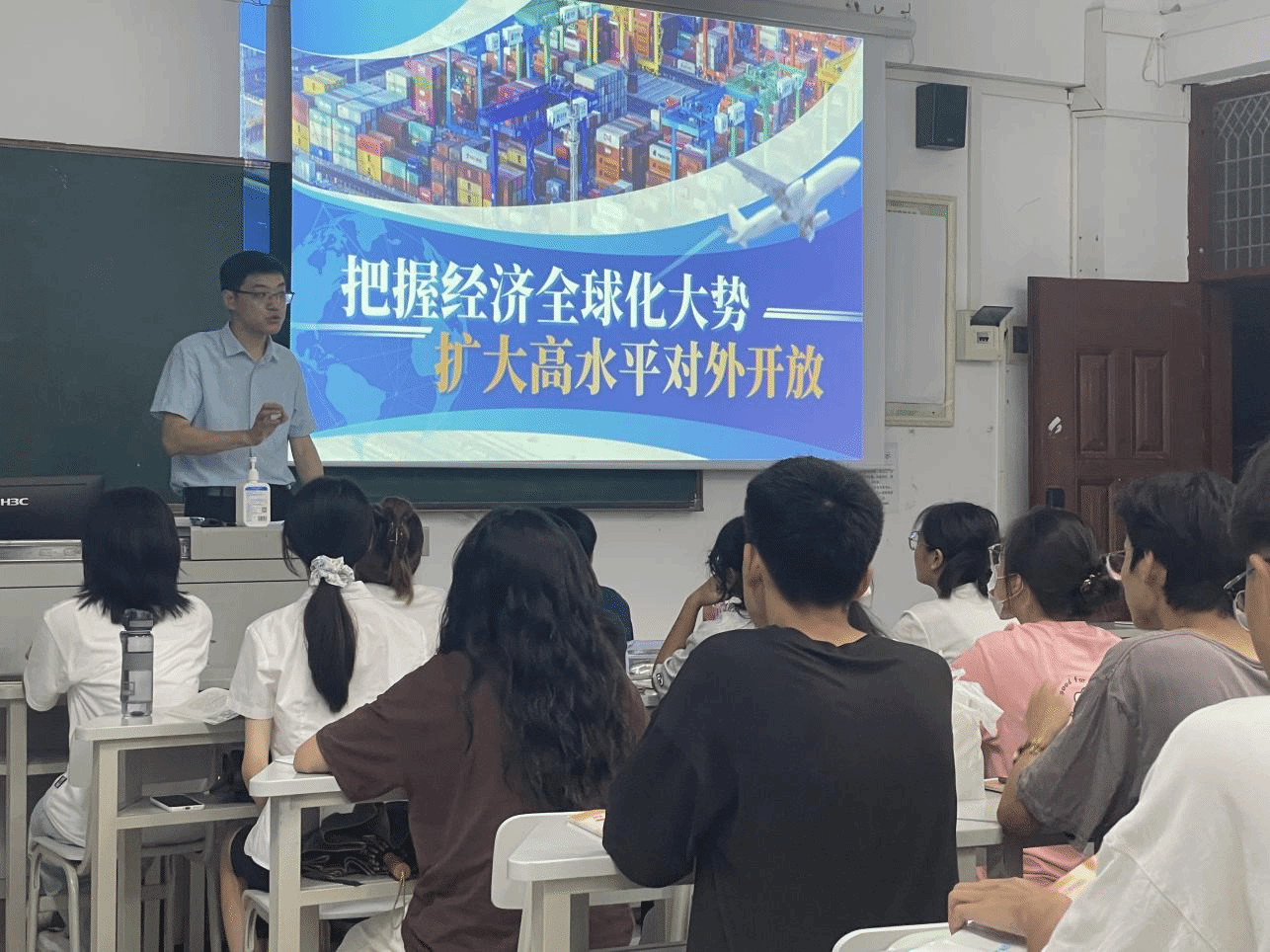 6月4日,学校党委委员田小林为2023级旅游管理专业本科1班的同学们讲授“把握经济全球化大势 扩大高水平对外开放”专题思政课。他从历史的逻辑与现实的脉络中,深刻剖析了经济全球化的发展大势,介绍了我国扩大高水平对外开放、有效应对内外部形势深刻复杂变化的重要举措,让同学们深刻感受到中国在经济全球化大潮中的坚定立场和积极作为,也更加坚定了同学们为构建人类命运共同体而努力奋斗的信念和决心。