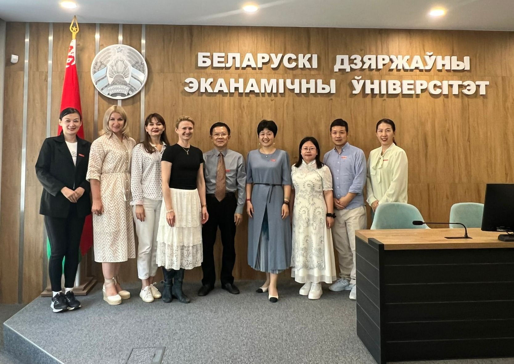 海经贸代表团访问白俄罗斯国立经济大学,与该校外事副校长莫洛佐维奇等人就两校合作办学进行交流讨论,并达成初步共识。海经贸代表团还与在白俄罗斯国立经济大学留学的海经贸毕业生进行座谈,了解他们在俄学习、生活等情况。