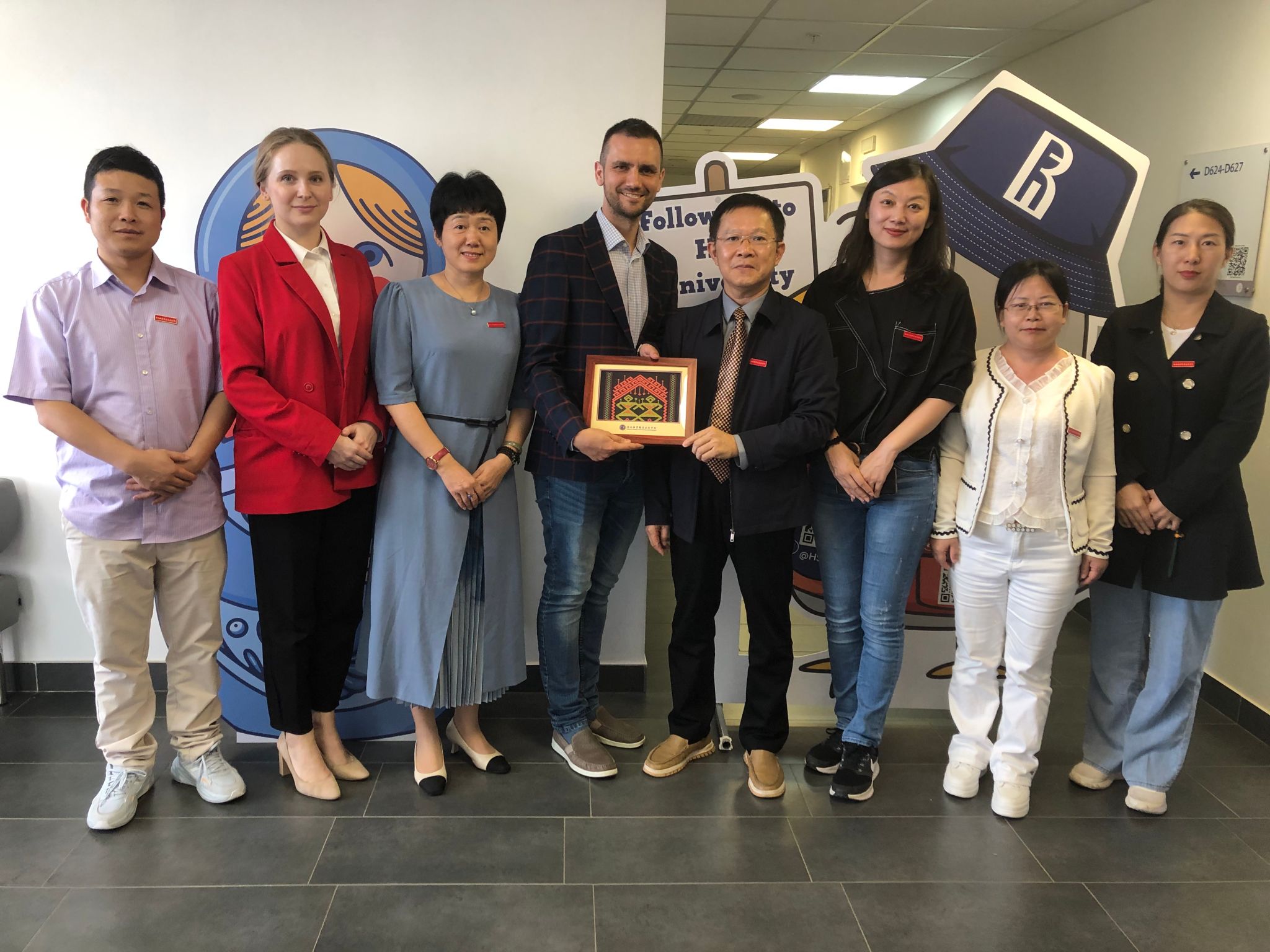 白俄罗斯国立大学学科种类齐全,拥有130多个创新团队,与中国60多所院校合作,2024年3月18日在三亚崖州湾科技城揭牌成立白俄罗斯国立大学中国创新教育研究院。该校副校长布洛欣表示,海经贸将是白俄罗斯国立大学重点合作对象,双方将进一步协商合作方案,共同推进教育、科研等方面的合作。海经贸代表团看望了在白俄罗斯国立大学修读博士学位的海经贸2015届毕业生师志超,参观了该生全程参与的北京城建集团援白俄罗斯国家足球体育场项目。