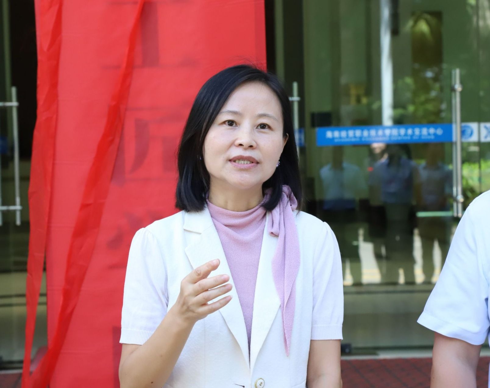 陈桦宣读了《关于命名首批海南工匠学院的通知》。她说,为进一步提升海南省职工技术技能水平和创新创造能力,省总工会决定命名5家单位为首批“海南工匠学院”,海经贸位列其中。学校要充分发挥自身资源和优势,深入推进产业工人队伍建设改革,积极探索产学研融合发展新模式,重点围绕海南自由贸易港未来产业,聚焦培养高精尖缺人才和高技能人才,聚焦职工技术创新,努力把工匠学院建设成为职工技能素质提升和技术创新的基地,培养造就更多适应海南自由贸易港发展需求的工匠人才。