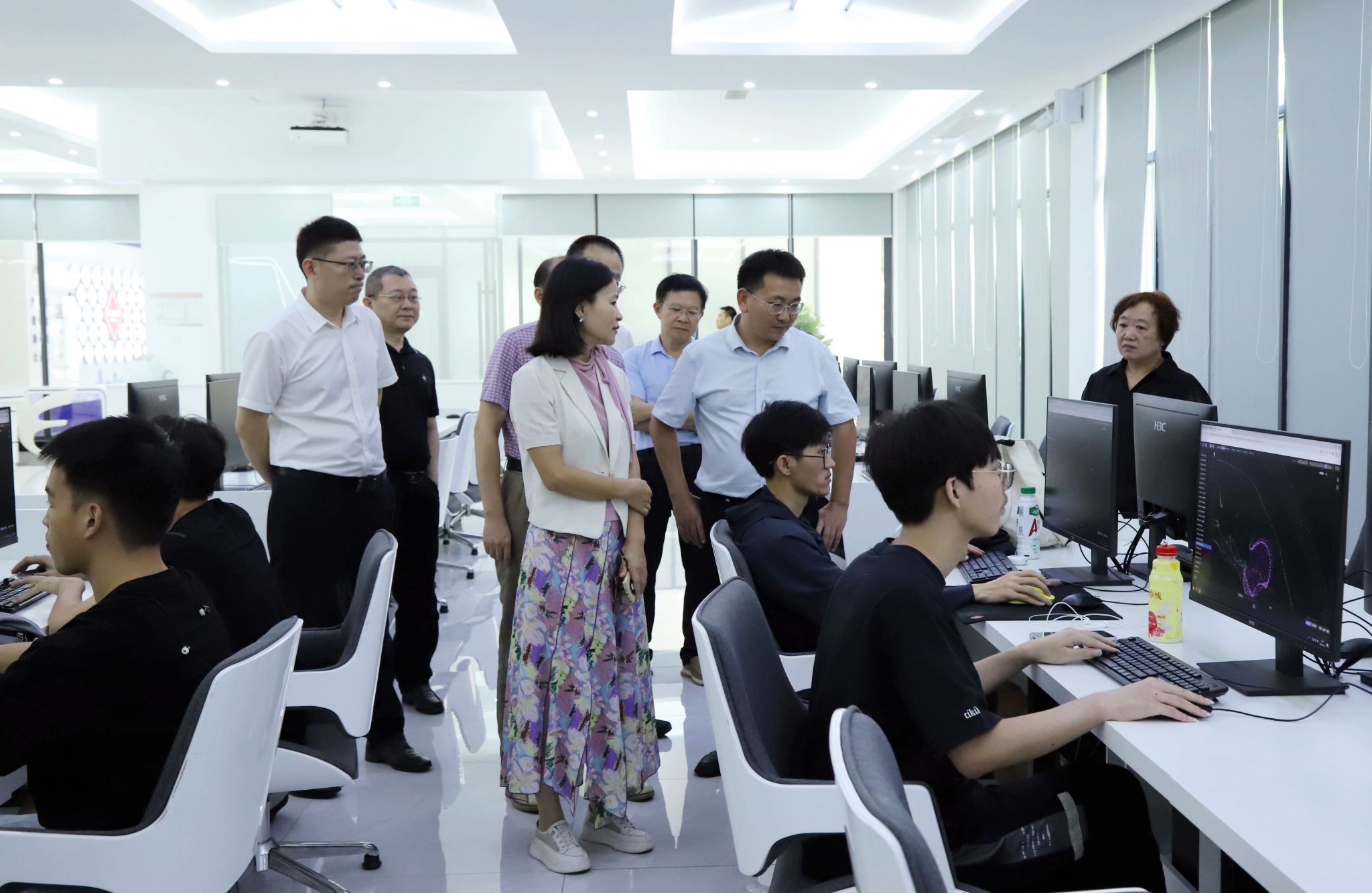 崔昌华陪同陈桦一行参观考察校园,先后来到正保财务云共享中心、理想汽车产业学院、智慧旅游产教融合实训基地和新一代信息技术ICT产教融合基地,有关负责人介绍了校企合作、人才培养、学生实训等情况。崔昌华在图书馆介绍了学校整体办学和发展情况以及“双高”建设取得的成绩。